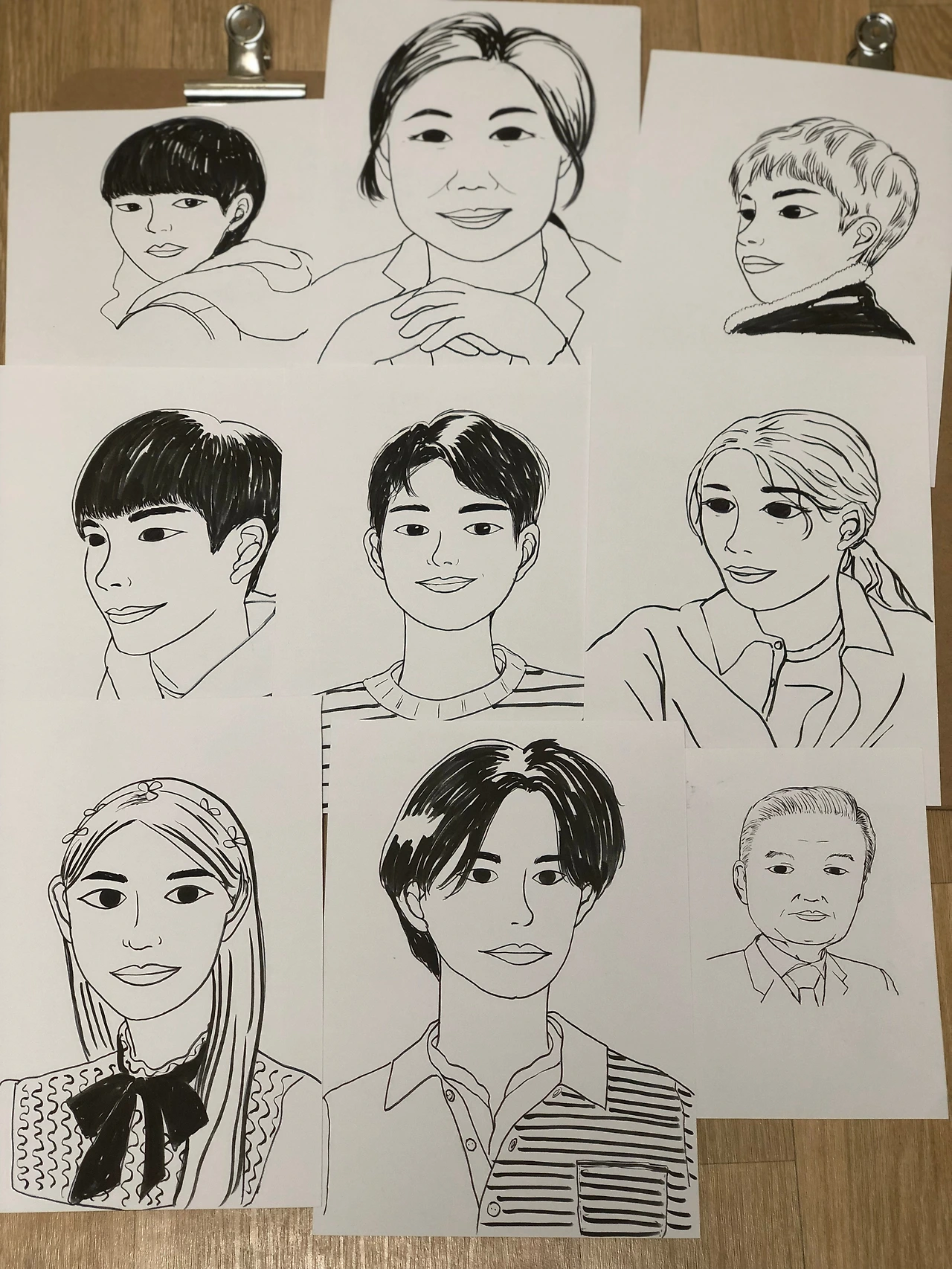 처음 캐리커처를 경험한 저는 내가 그릴 수 있는 방식으로 그리지 않으면 못 그리겠다는 생각을 하게 되었고 제가 할 수 있는 방법을 찾아서 그리기 시작했습니다.