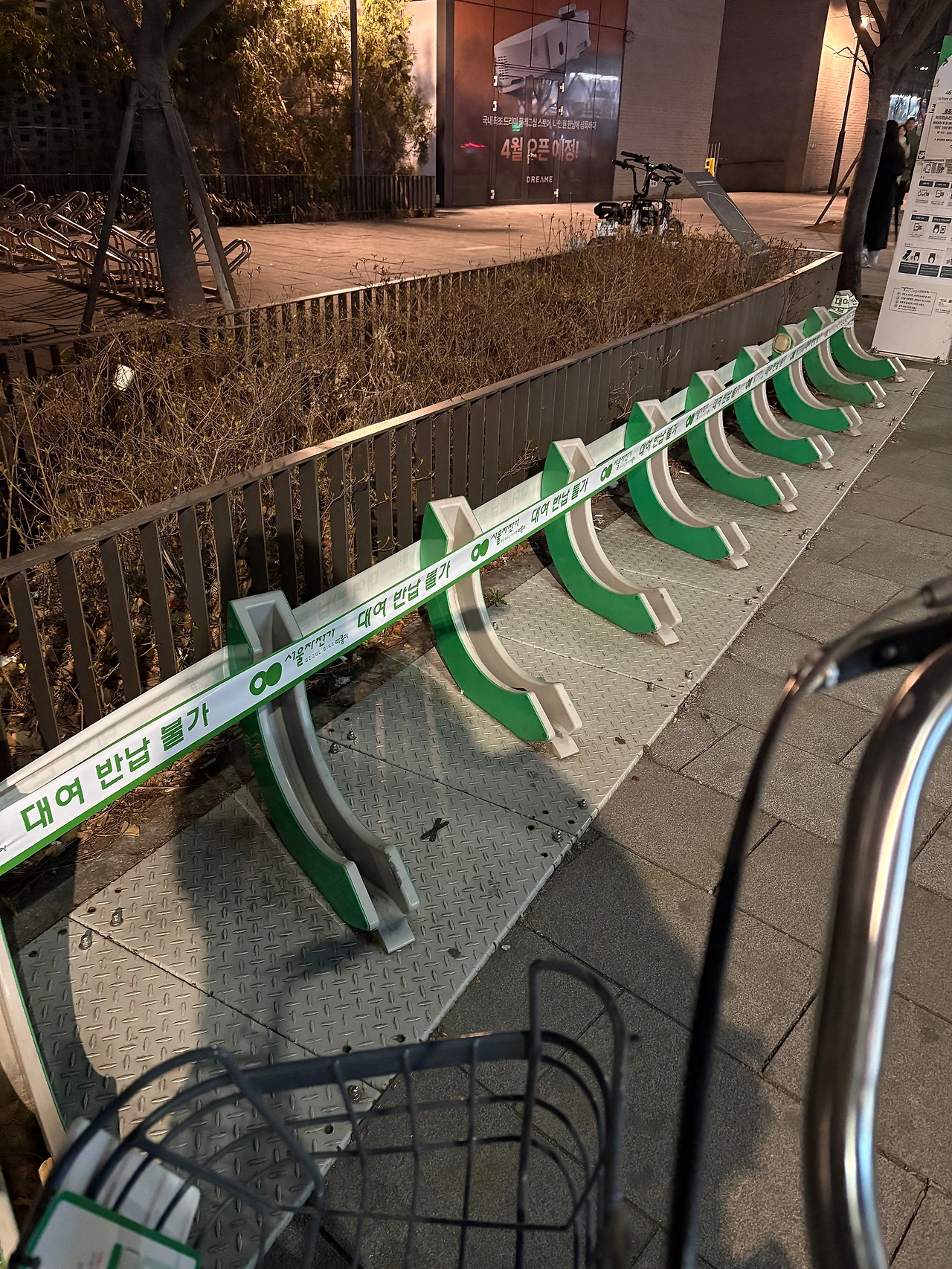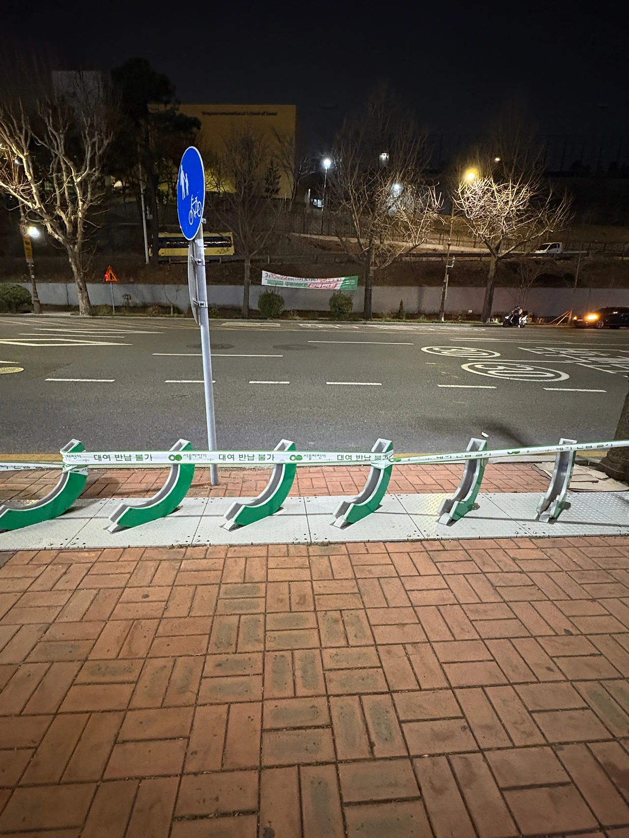 계속 길을 따라가며 따릉이 거치대를 찾았지만 역시 반납 불가 테이프가 쳐있었다.