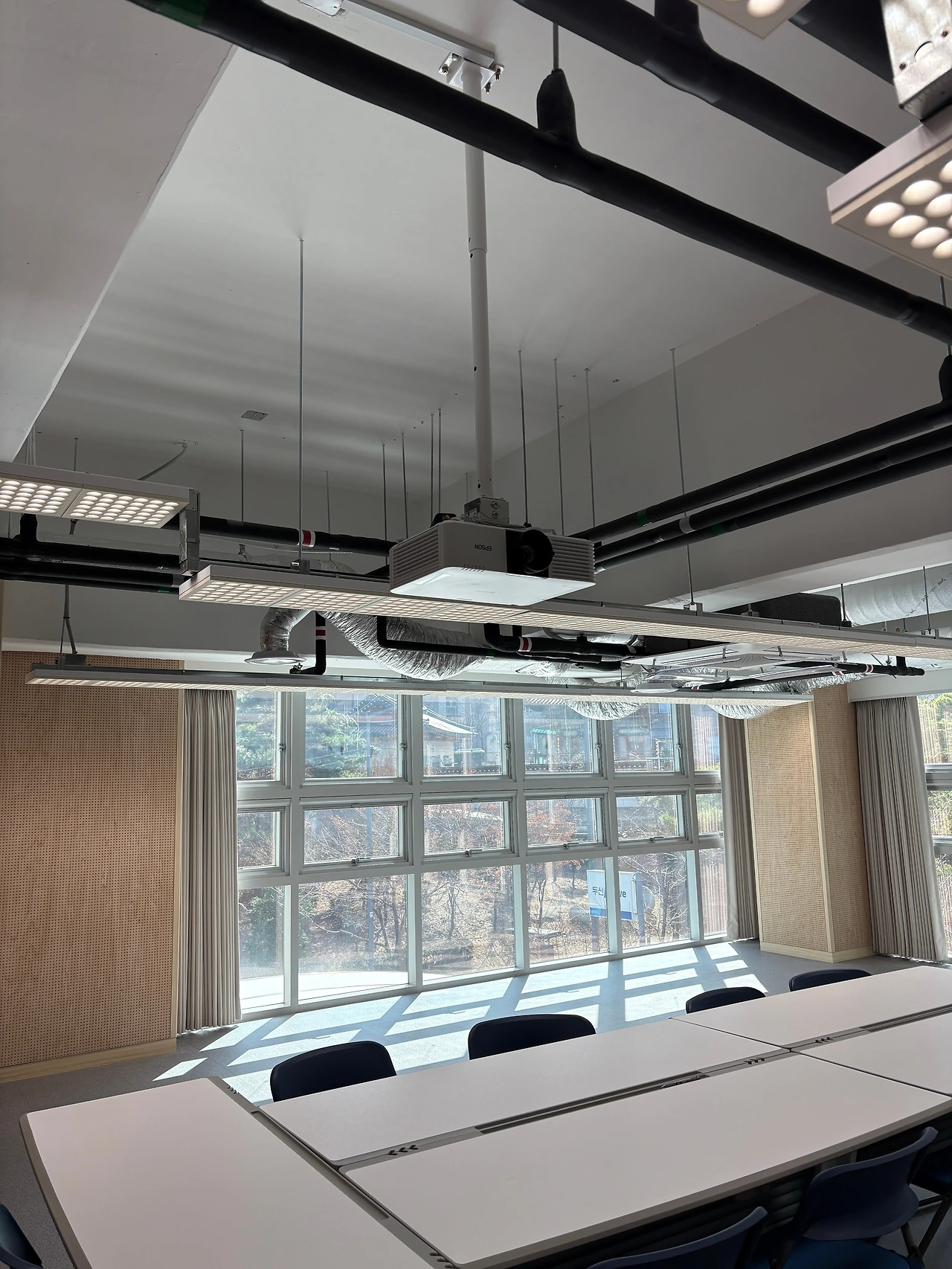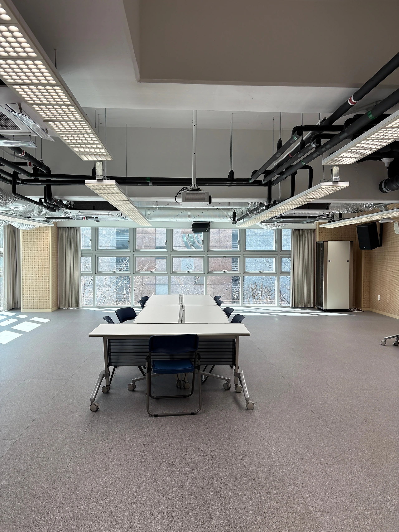 아니면 5층도 괜찮다. 벽을 따라 전시를 하고 체험 테이블을 가운데 두어서 관람과 체험이 한 공간에서 이루어지는 것이다. <유치원 작품 발표회> 느낌으로! 빔프로젝터가 있는 것도 마음에 들었다.