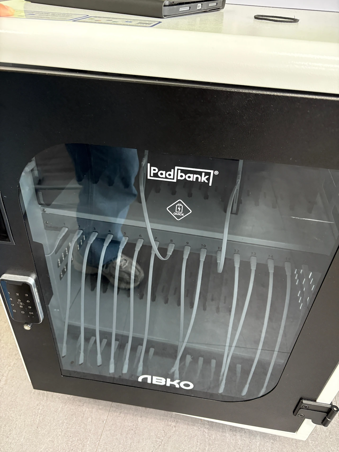 다른 충전함을 1학년 2반 충전함 비밀번호로 교체하고 다시 반에 가져다 둡니다. 인사하는 학생들에게 “조심히 사용해 주세요! “하고 나옵니다.