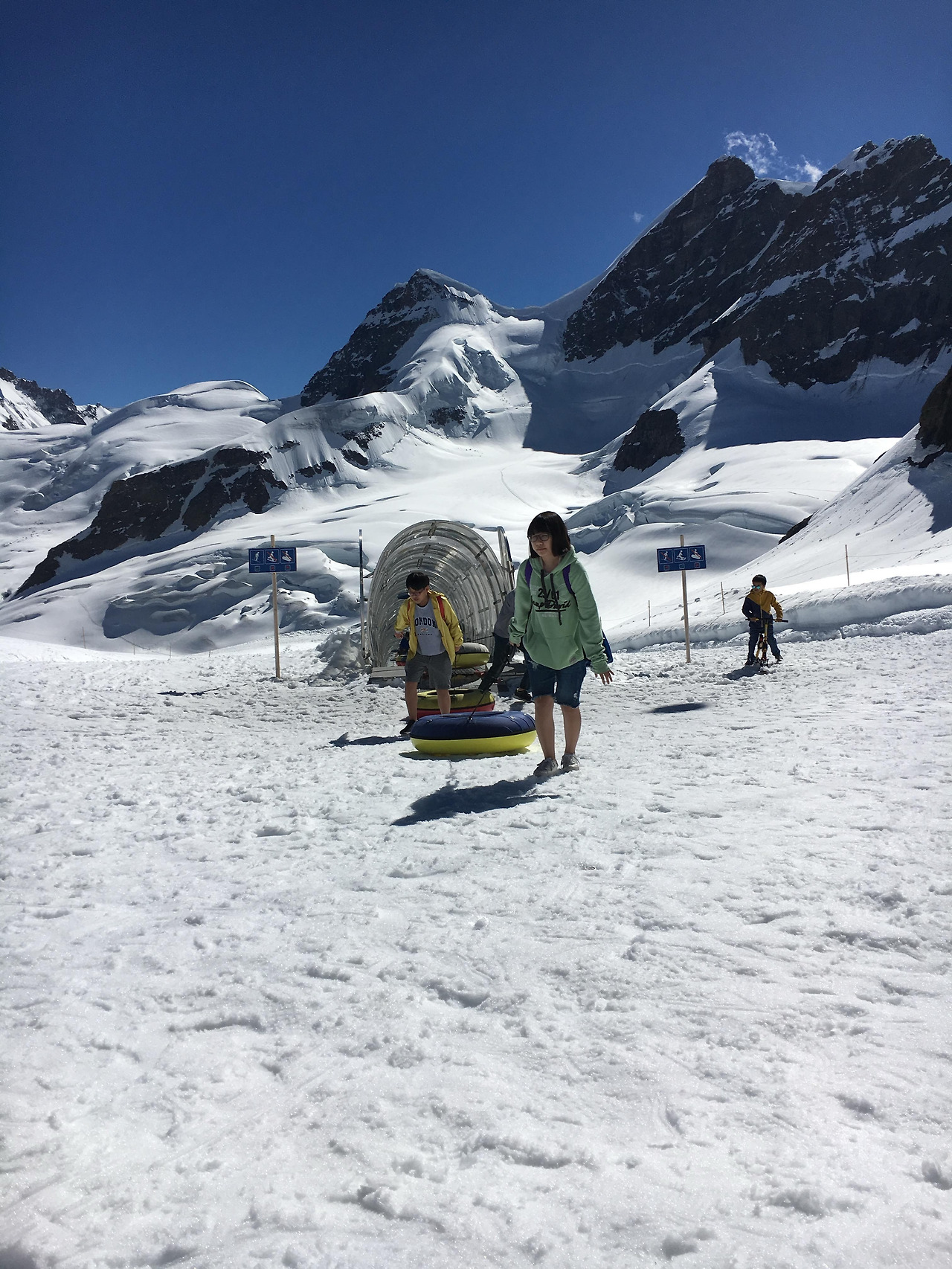 스포츠 경기를 응원하는 관객처럼 눈썰매를 외치는 아이들의 응원을 받으며 비틀비틀 티켓 카운터 앞에 섰을 때 미세하게 다리가 떨렸다. 나의 애처로운 눈빛 때문이었을까, 다행히 할인을 받아 아이들과 융프라우요흐로 출발할 수 있었다.