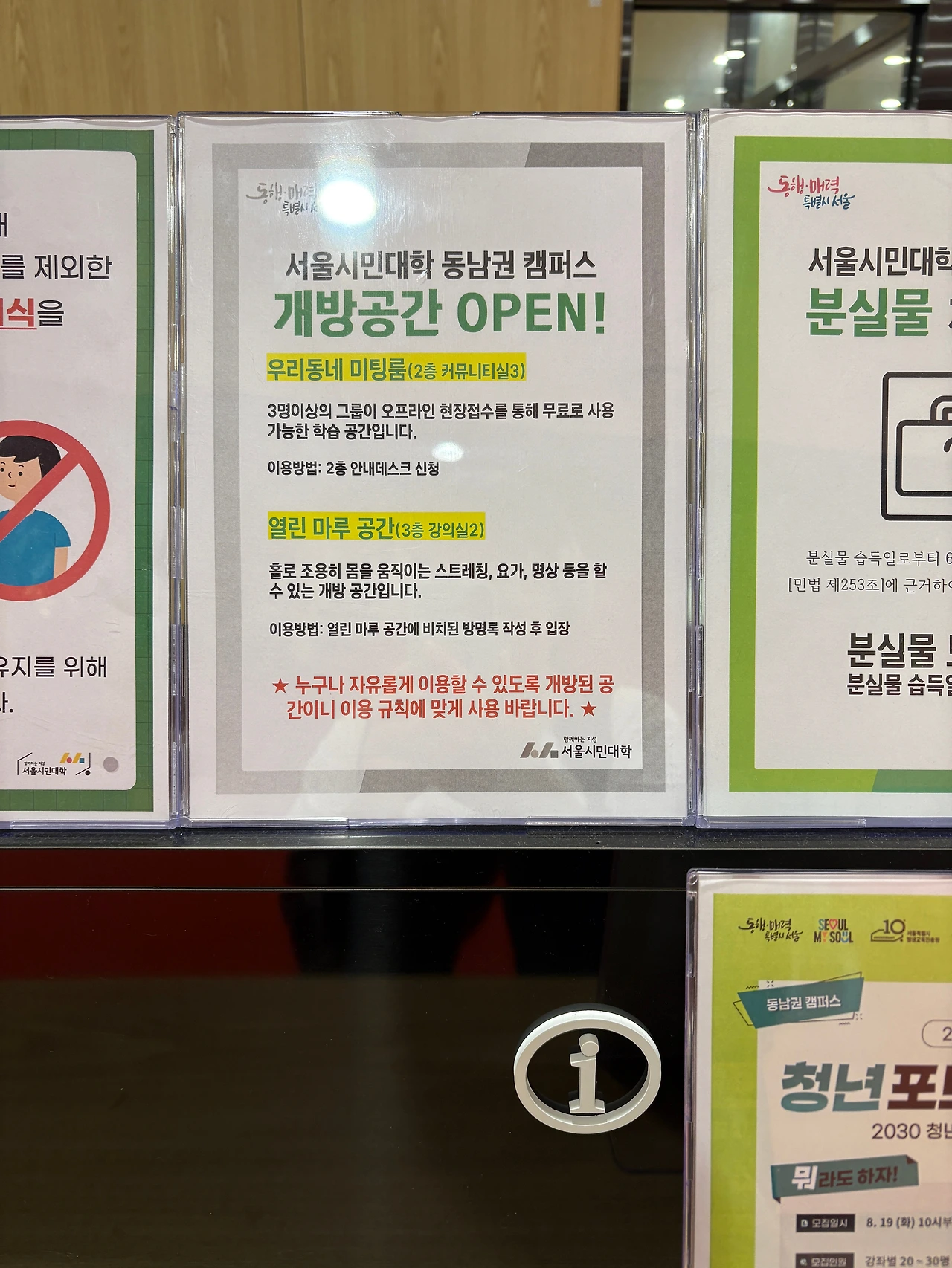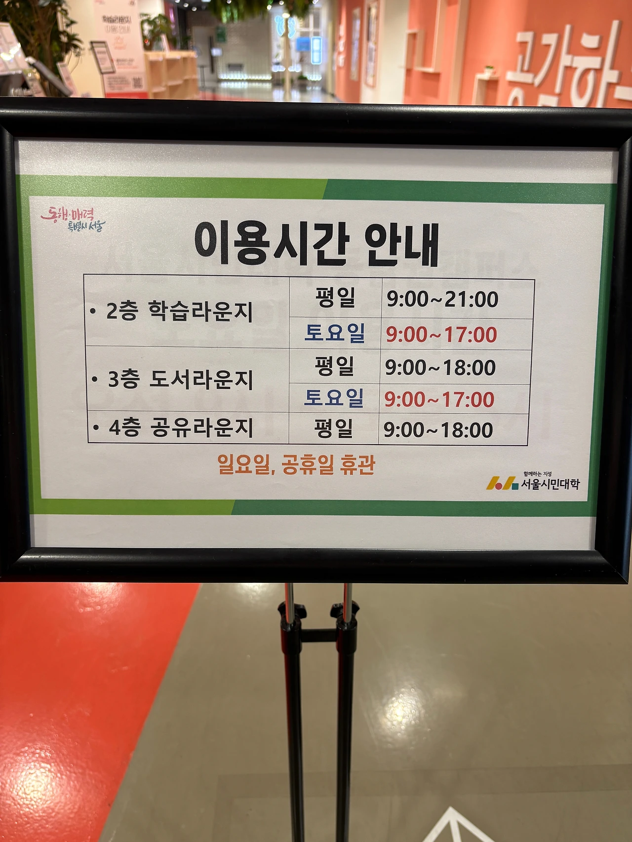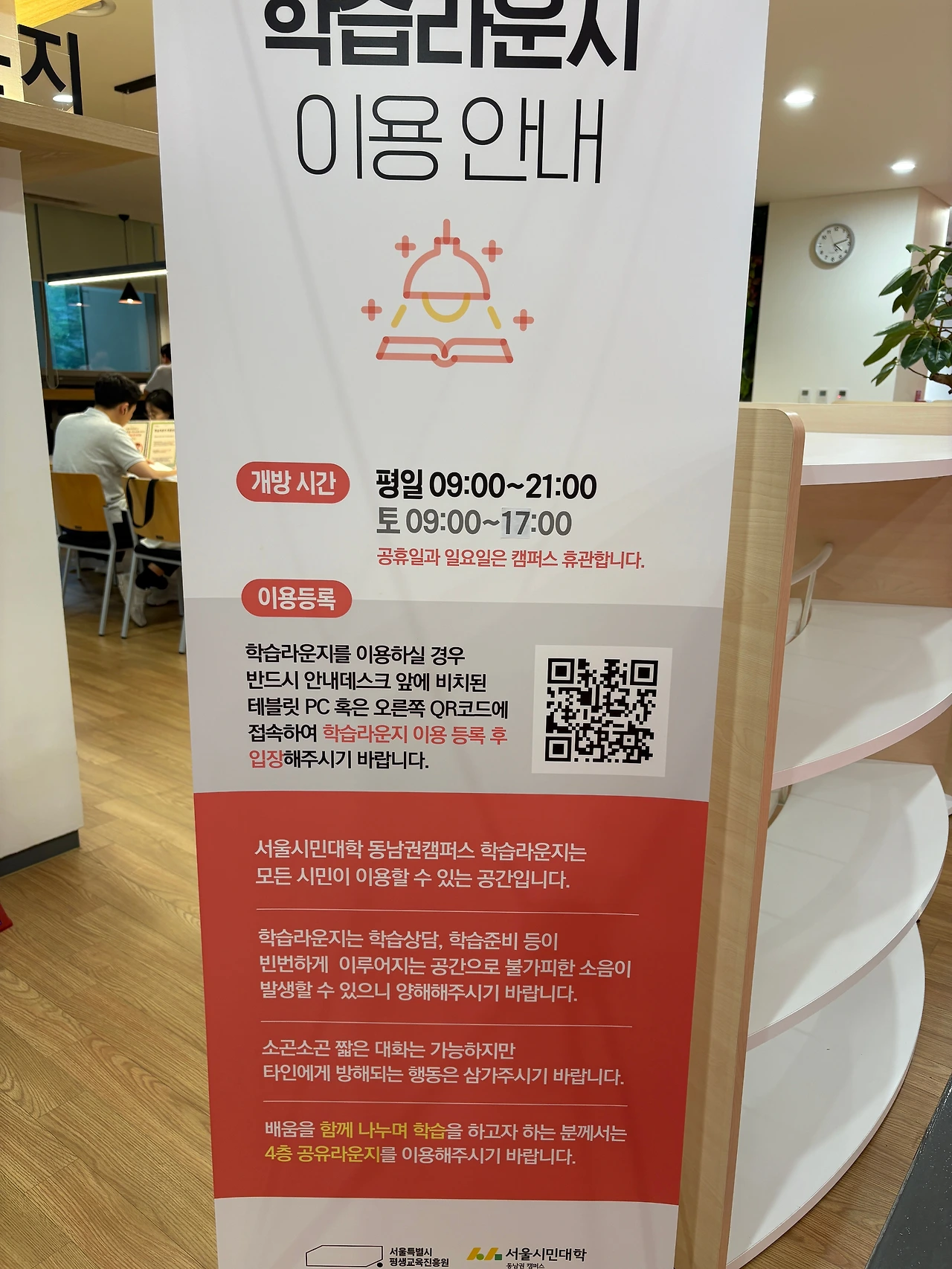 도서관은 아니지만 과제하기에 좋을 것 같다. 이용 시간도 충분하다.