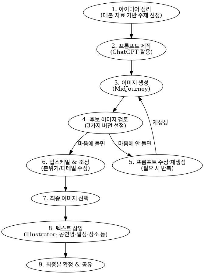 대본 및 자료를 받아서 아이디어를 구상하고 챗지피티 미드저니 프롬프트 생성을 통해 내용 입력을 한다.