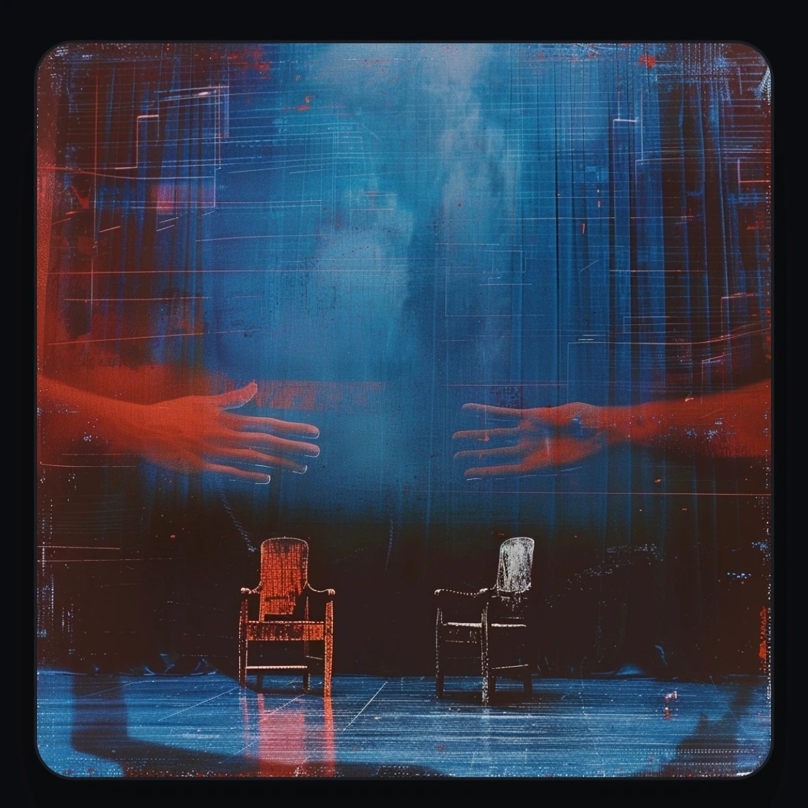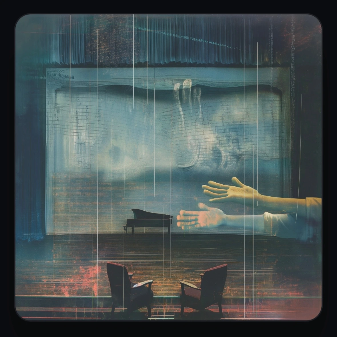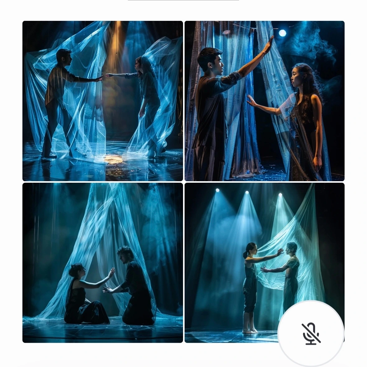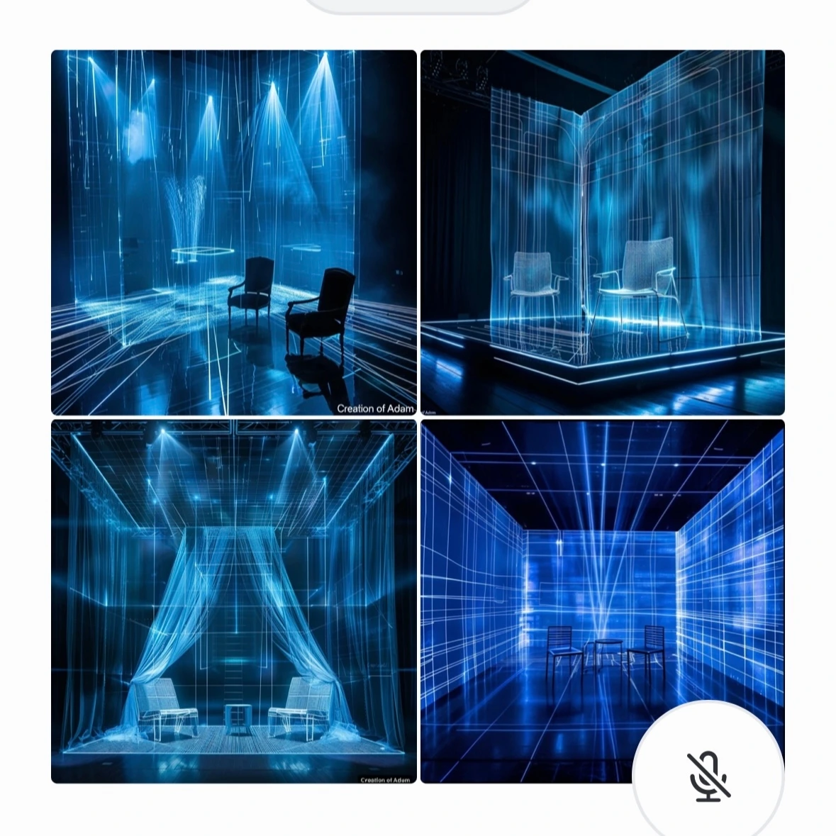 내용은 AI와 인간의 탐구, 협업, 생각하고 있는 이미지는 매트릭스 같은 언어코드 화면, 물랑루즈가 주는 느낌. 모두 한 번에 담을 건 아니고 버전을 세 가지 만들 거야
