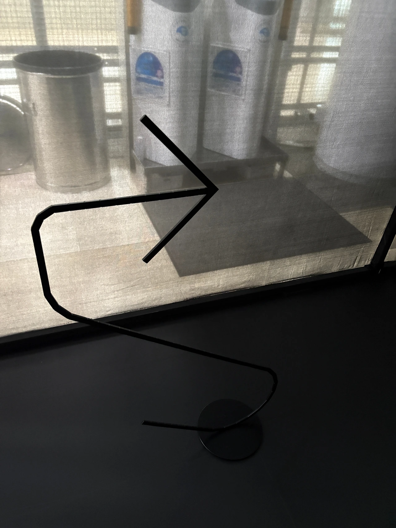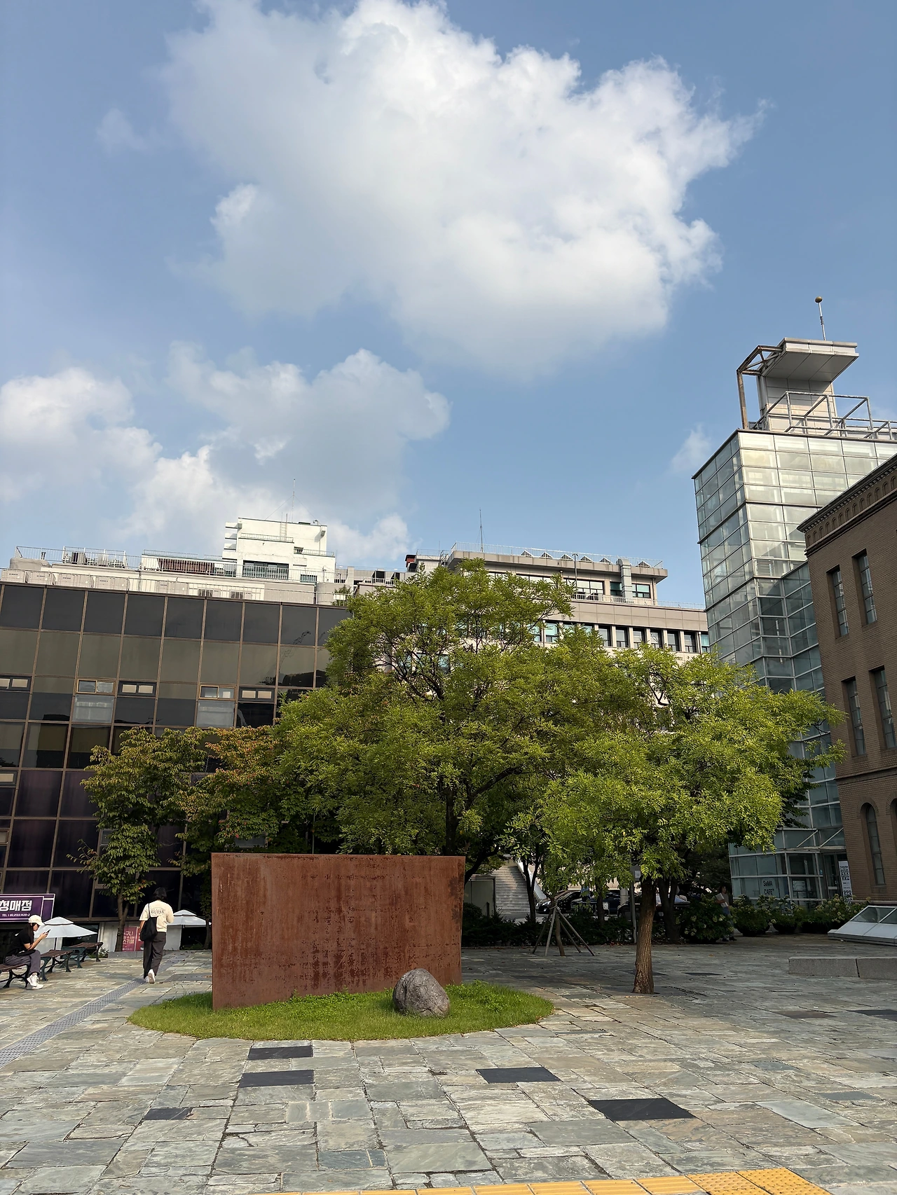 정면에 보이는 녹슨 벽과 바위. 벽을 편 손이라 하고 바위를 쥔 손이라 했을 때, 보가 바위를 이기지만 녹슨 보는 바위를 이기지 못한다. 저는 그런 느낌을 가졌습니다.