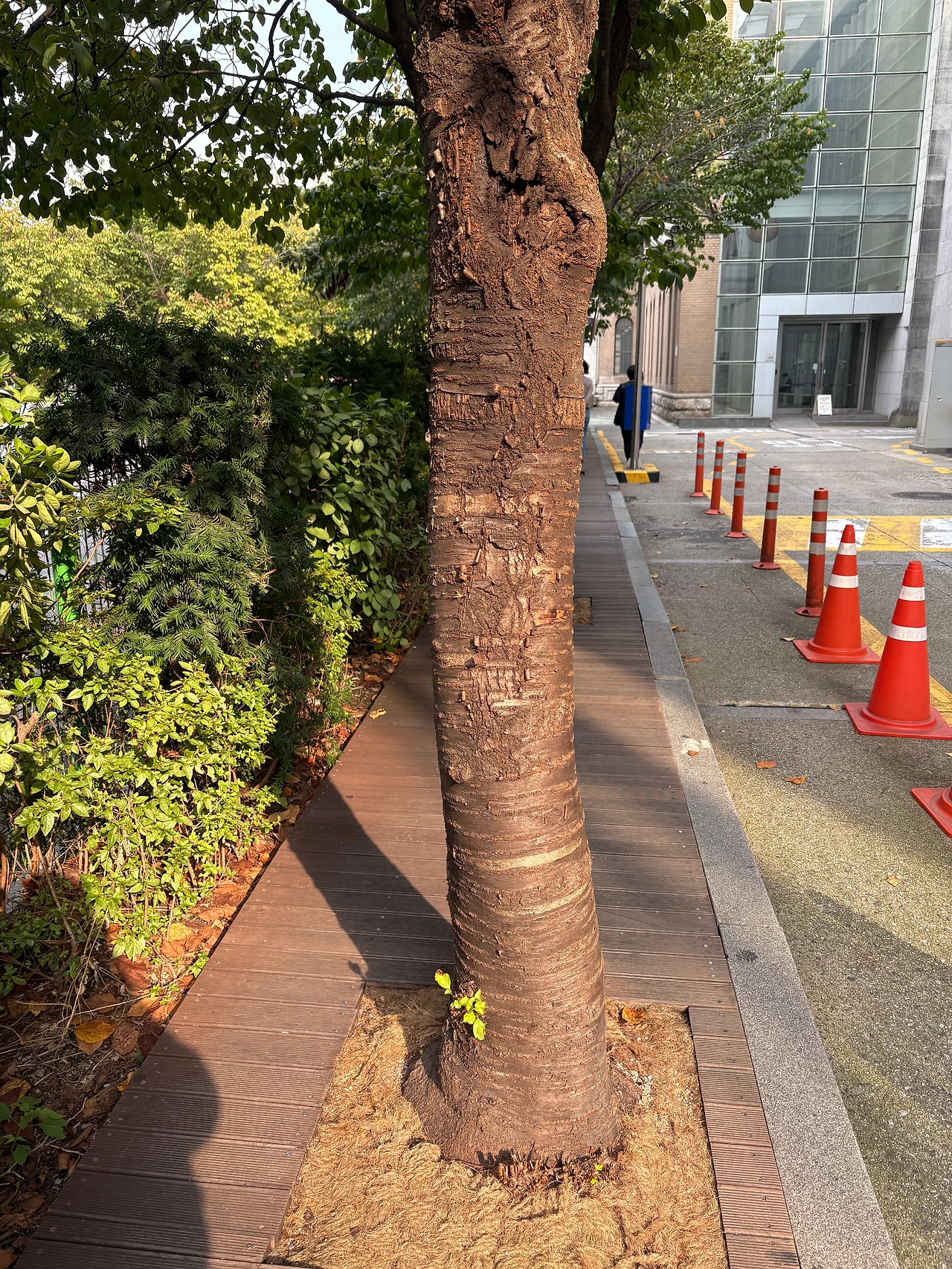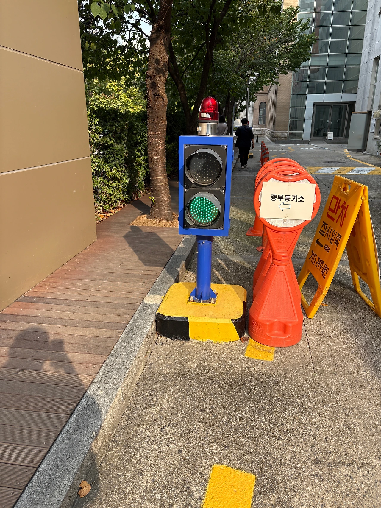 미술관에 도착해 가장 먼저 만난 작품 파란 녹색 신호등과 싹 난 나무기둥