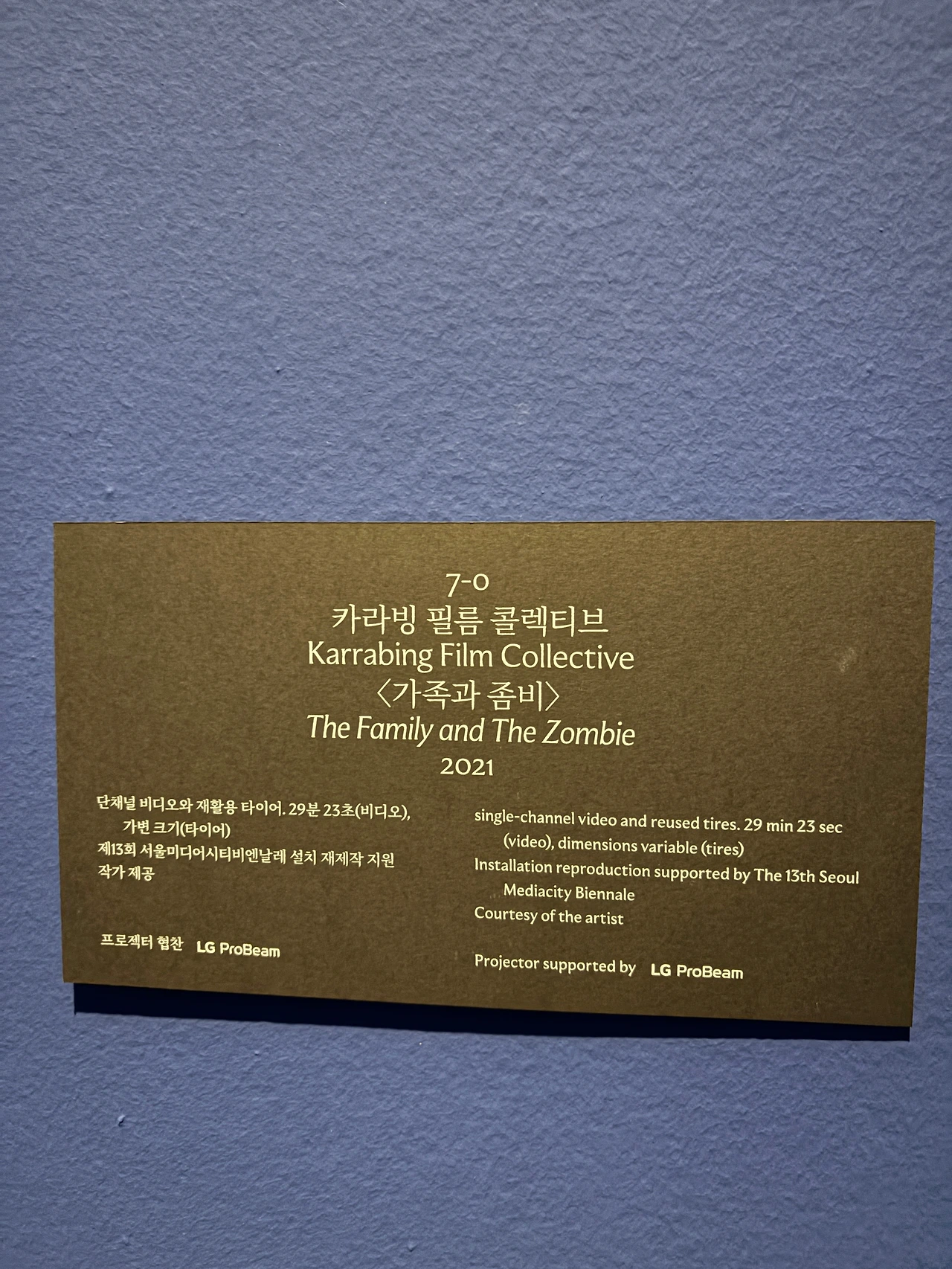 〈가족과 좀비〉는 콜렉티브의 구성원들이 조상으로 부터 물려받은 땅에서 자신들의 물리적, 윤리적, 의례적 유대감을 지키기 위해 고군분투하는 현재와, 조상의 영적 존재들과 백인 좀비들이 출몰하는 디스토피아적 미래를 오가며 전개됩니다. 코미디, 비극, 리얼리즘이 뒤섞인 이 영화는 독성 자본주의의 파괴적 관행과 그것이 미래 세계에 미칠 영향을 성찰하게 합니다. <서울 미디어시티 비엔날레 웹페이지 발췌>