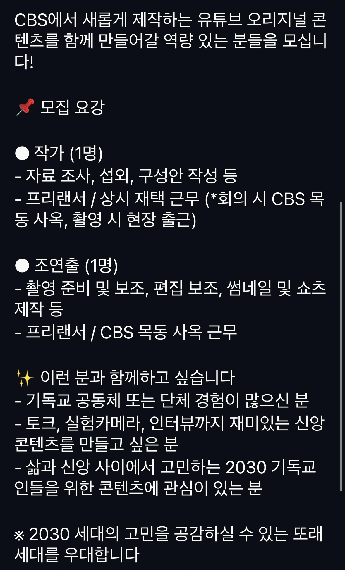두 번째 소식은 교회 방송팀에서 만난 청년이 공고가 떴다며 소식을 전해왔다.