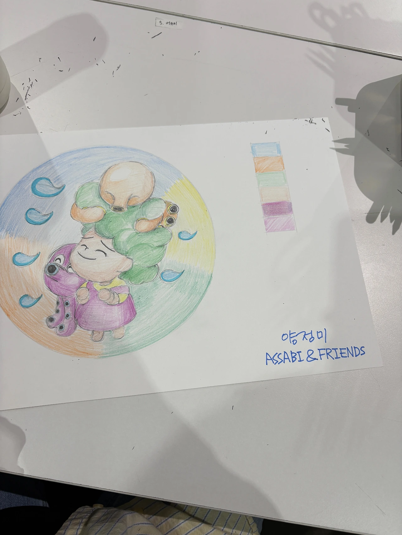 나는 아싸비 캐릭터를 예술성 있게 그려보고 싶어서 캐릭터를 그렸다. 오늘 종이에 그린 그림을 다음 주에 접시에 옮겨 그린다.