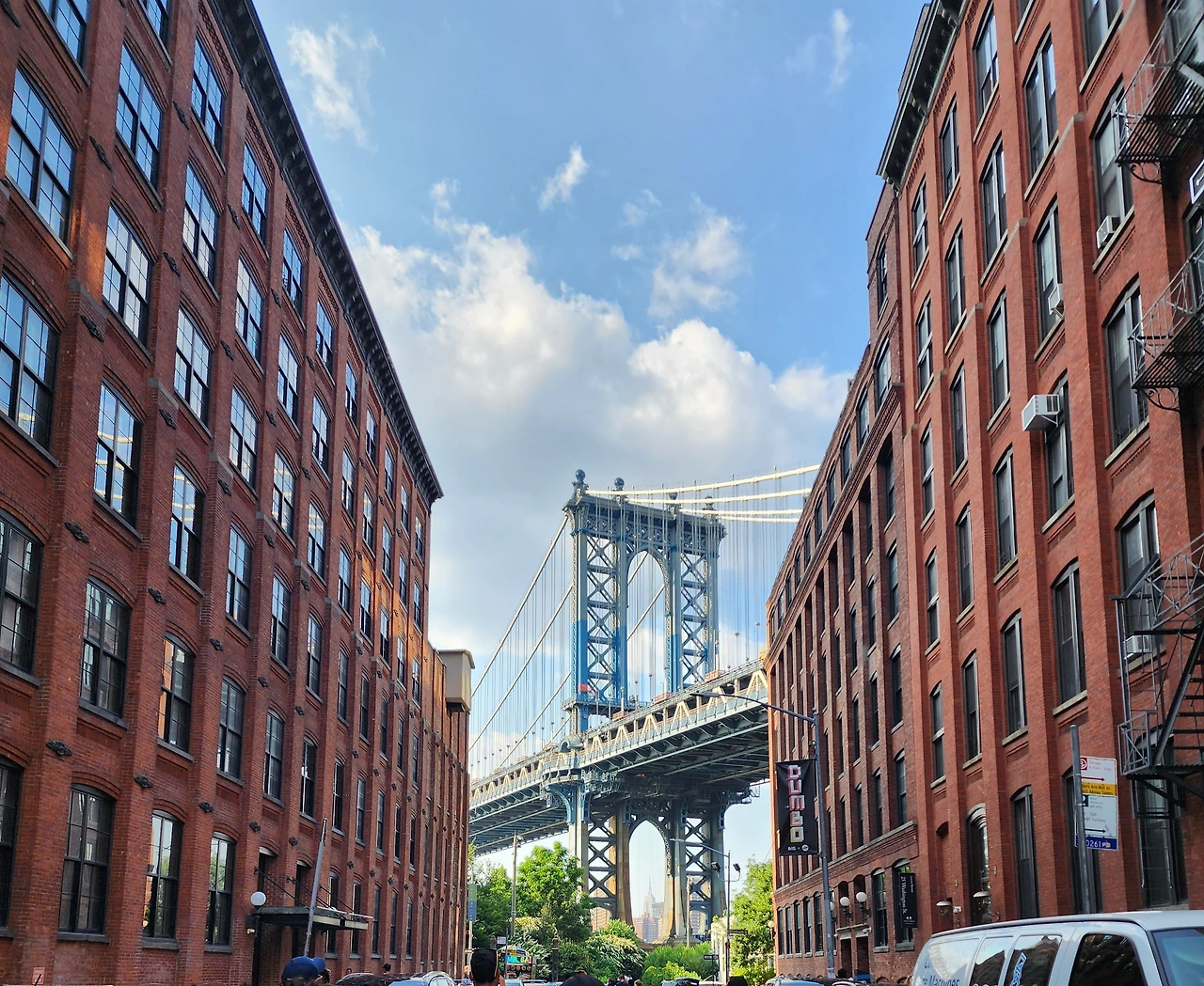 사람들이 뉴욕에 다녀온 다음에 사람들이 가장 많이 프로필 사진의 배경으로 선택하는 곳이 어디인가 하면 나는 타임스퀘어 아니면 덤보일 거라고 단언할 수 있다. 실제로 내 친구들이 뉴욕에 다녀오면 죄다 프로필 사진이 덤보(Down Under the Manhattan Bridge Overpass)로 바뀌어 있었다. 그만큼 뉴욕을 상징하는 대표적인 곳이란 뜻이지. 처음에 뉴욕 여행 검색할 때 덤보가 계속 뜰 때는 내가 아는 그.. 아기 코끼리 맞는가.. 하고 당황스러웠지만 알아보니 맨해튼 브리지가 건물 사이로 보이는 구역을 지칭하는 것이었다. 참으로 유치원생 수준의 단순한 알고리즘에 스스로 머쓱하기 그지없었다.