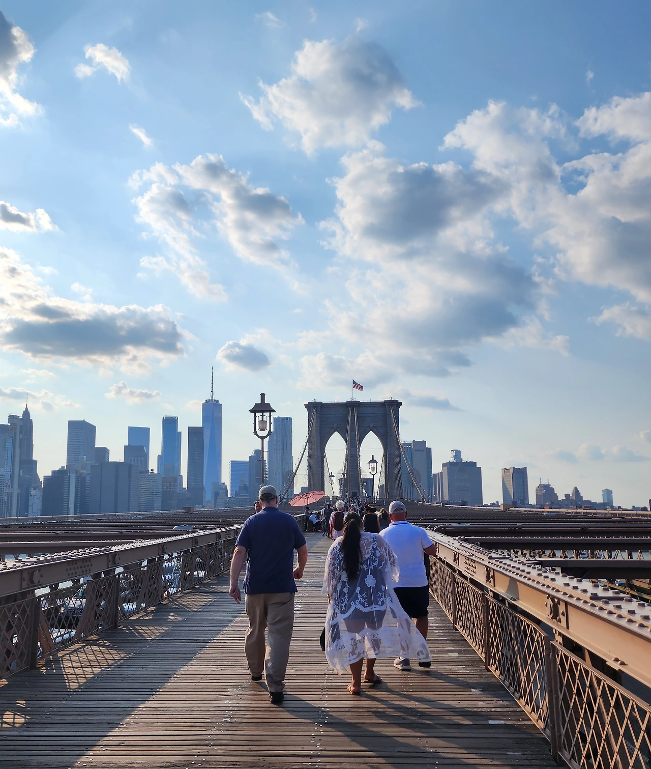 맨해튼 브리지를 오르면 여러 가지 포장마차들이 일렬로 있다. 거의 대부분 생과일, 음료수, 얼음물 같은 거라든지 모자, 마그넷, 티셔츠 등을 판매하는 기념품점 같은 곳인데, 입구는 비싸고 끝으로 갈수록 저렴하니까 입구에서부터 사는 바보 같은 행동은 하지 말도록. 모자는 물론 어떤 브랜드의 짝퉁인지 아닌지는 모르겠지만 10달러도 안 하는데 퀄리티가 꽤 괜찮아서 한국에서 쿠팡에서 사는 것보다 준수했고, 마그넷도 1달러 정도에 구매했던 것으로 기억한다. 그 가격에 미국에서 모자랑 마그넷을 사다니, 요즘 동남아에 가도 마그넷 1개를 1000원에는 못 사는데 조금 뿌듯했다. 마그넷은 지금도 내 냉장고 사이드에 다른 해외에서 건너온 마그넷들과 어깨를 나란히 하고 있다. 가놓고도 마그넷 안 사 온 나라들이 조금 아쉬울 뿐이다. 다음에 또 가보면 되니까.