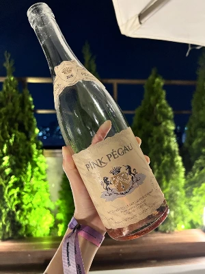 공연이 끝난 후, 친구들과의 밤을 간직하고 싶어 로제 와인을 한 병 꺼냈다.