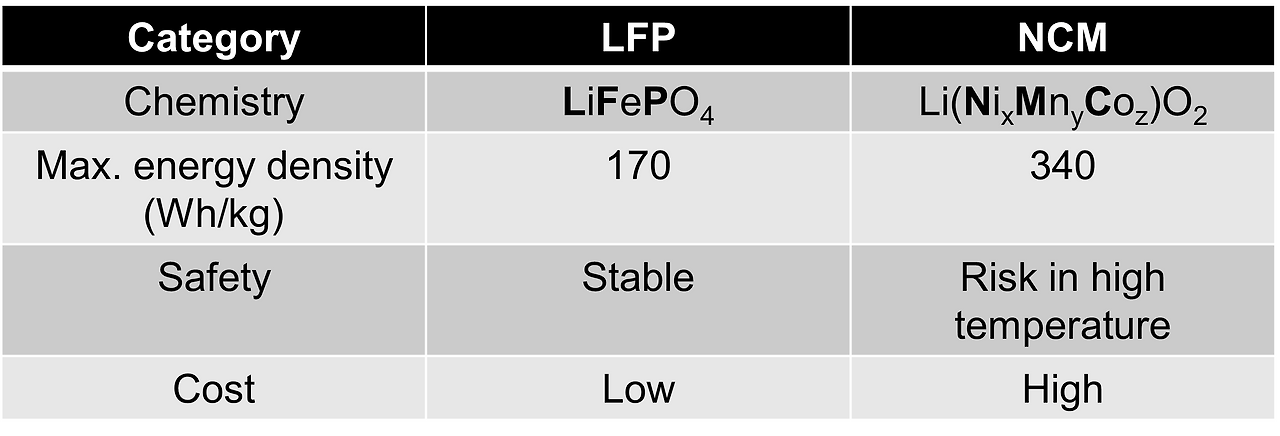 그러면 LFP 배터리와 NCM 배터리의 특징을 아래와 같이 정리해 볼 수 있습니다.