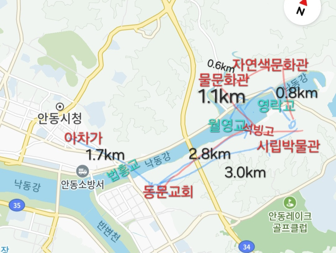 혼자 놀기가 다시 지루하다. 감정소모가 싫으면 이런 권태는 감당해야지. 지도를 펴고 머리로 여기저기 찾아간다. 어머니에게서 멀지 않은 동네, 고래희에게 길지 않은 길을 찾는다. 오늘은 안동이다. 동문교회에서 출발하여 낙동강변 나들이길을 따라 영락교를 건너 월영교로 돌아온다. 그리고 '아차가' 아이스크림을 먹을 계획이다.