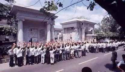67폭동 당시 총독부 앞에서 시위 중인 좌익단체 연합