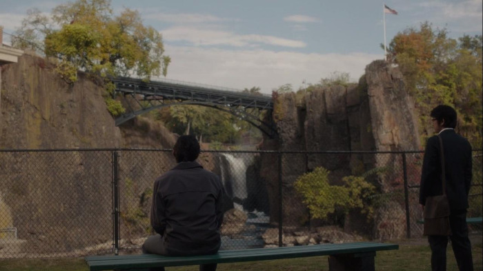 패터슨도 우리도 뒤숭숭한 마음으로 감독의 물음을 따라가 본다. 혼란스런 마음을 잠재우려 공원 벤치에 앉아 폭포를 바라보던 그에게 한 일본 시인이 다가온다. 그는 패터슨 옆자리에 앉아 폭포를 바라보다 윌리엄 카를로스 윌리엄스의 시집을 꺼내 든다. 그가 꺼낸 시집을 물끄러미 바라보는 패터슨, 일본 시인은 옆자리의 시선을 느끼고 패터슨에게 말을 건넨다. 시인입니까, 그의 물음에 패터슨은 버스 운전사라고만 대답한다. 시를 쓴 적은 있지만 시인이라면 마땅히 자신이 쓴 시를 암송하고 있던지 시를 적어둔 책이 있어야 할 터이다. 아침에 로라에게 한 말과 같이 그에게 시는 이제 ‘물 위에 쓴 글자들’ 일뿐이다. 패터슨의 직업을 들은 일본 시인은 말한다, 그거 시적이군요. 그는 짧은 대화 끝에 패터슨에게 빈 공책을 선물하며 덧붙인다, 흰 종이는 많은 것을 의미하죠.