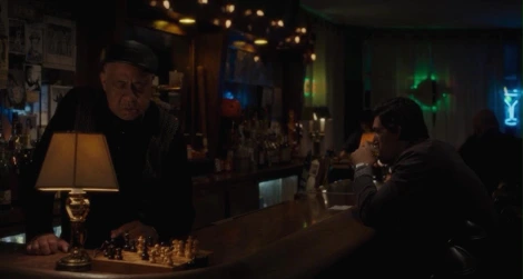 버스 기사로서의 일과를 마친 패터슨은 애완견 마빈을 데리고 마을의 바(Bar)로 향한다. 주인장과 잡담을 하며 맥주를 마시는 일은 시 짓기 이외에 패터슨이 가진 유일한 낙이다. 패터슨이 주인장과 마주하여 앉는 자리, 그 옆에 항상 놓여 있는 체스 판, 체스 판 위에서는 흡사 방금 전까지 경기가 벌어진 듯 체스 핀이 이리저리 흩어져 섰다. 누구와 체스를 두냐는 패터슨의 질문에 주인장은 ‘혼자서’ 둔다고 말할 뿐이다. 말을 맺은 주인장은 핀을 옮기려다 머뭇거리고, 패터슨은 무언가 마음을 스친 듯 한동안 체스 판에서 시선을 거두지 않는다.