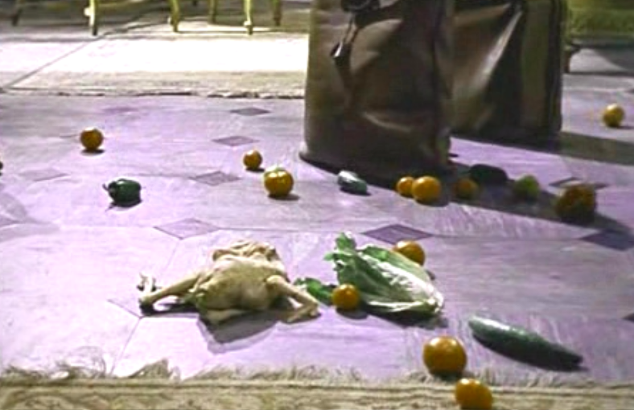 이런 생각의 연장선에서, 영화 후반부에 톰이 호텔 방을 찾아온 또 다른 친구 프레디마저 죽인 후 부엌 구석에서 '조리된 닭'을 먹는 일은 또 하나의 의미가 있다. 심부름 여자를 대신하여 프레디가 과일과 함께 갖고 온 것은 생닭이다. 즉 앞에서의 과일과 같이 날것 그대로의 순수이지만, 이미 모가지가 떨어져 나가고 훼손된 순수를 암시한다. 톰은 프레디를 죽였다는 행위로 한층 더 순수성을 잃게 된다. 사건을 덮기 위해 새로운 알리바이를 만들어야 하고 거짓말은 더욱 늘어간다. 그의 순수함도 훼손되어 가는 것이다. 조리된 닭을 뜯어먹는 톰은 이미 필립을 죽일 때의 모습보다 더 많은 순수함을 잃어버린 상태이다.