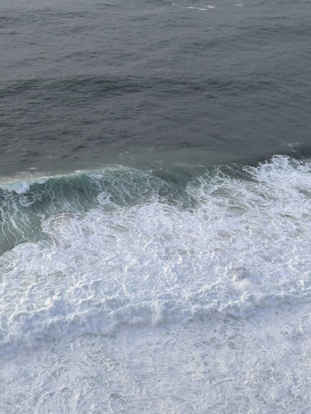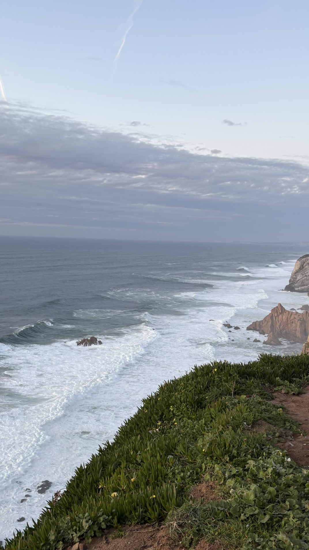 옅은 안개가 끼어 흐릿한 멀리 너머 보이는 바다