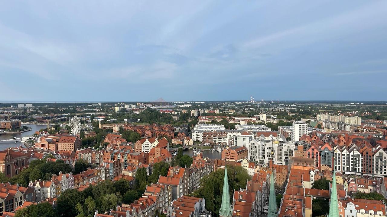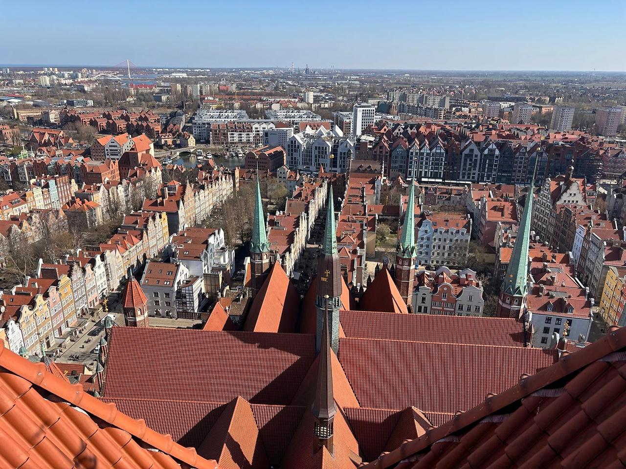 그리곤 대성당 꼭대기 층으로! 굉장히 저렴한 티켓을 사면 가파르고 높은 계단을 지나 그다인스크의 도시를 한 눈에 담을 수 있는 지붕까지 올라갈 수 있다. 따가운 햇빛 아래에서 우린 사진도 찍고, 지도를 보며 어떤 건물이 어디에 있는지 맞추기도 하며 잠시 그다인스크의 하늘과 가까이 있었다.