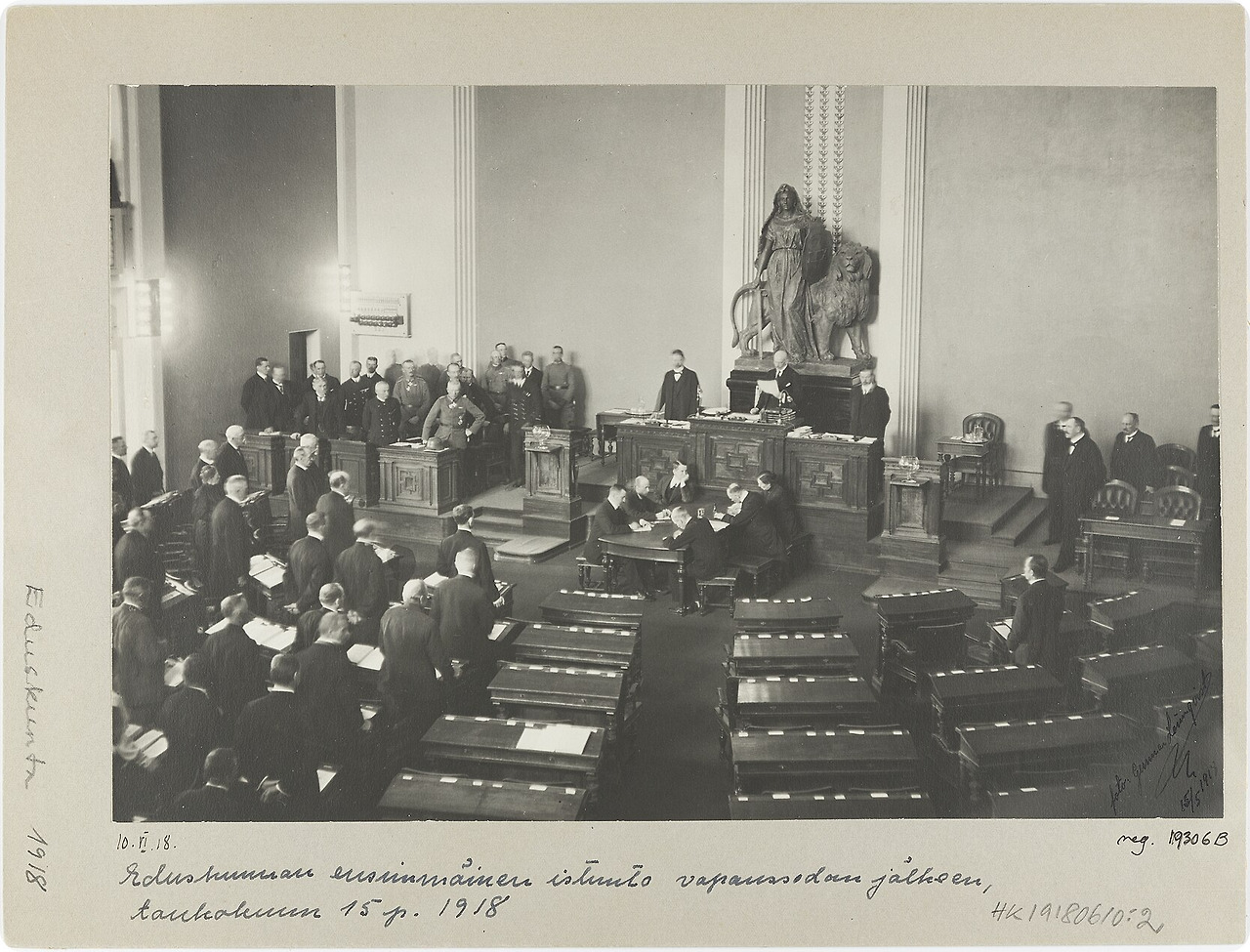 1918년 5월에 원로원은 독일왕족을 옹립하려던 보수주의자-왕정복고세력이 장악했다. 왕정복고세력이 독일제국육군의 지원에 힘입어 주도권을 쥐고 흔들면서 의회의원들 중 내전 당시 적위대봉기에 조금이라도 연루된 사람은 모두 퇴임당했다. 그 결과 좌익성향의원은 사회민주당소속 의원 3명이 전부였다. 원로원이 반민주적인 임시행정부임을 왕당파 스스로 선전한 셈이다. 이마저도 독일이 1차대전에서 패전하면서 와해됐다.