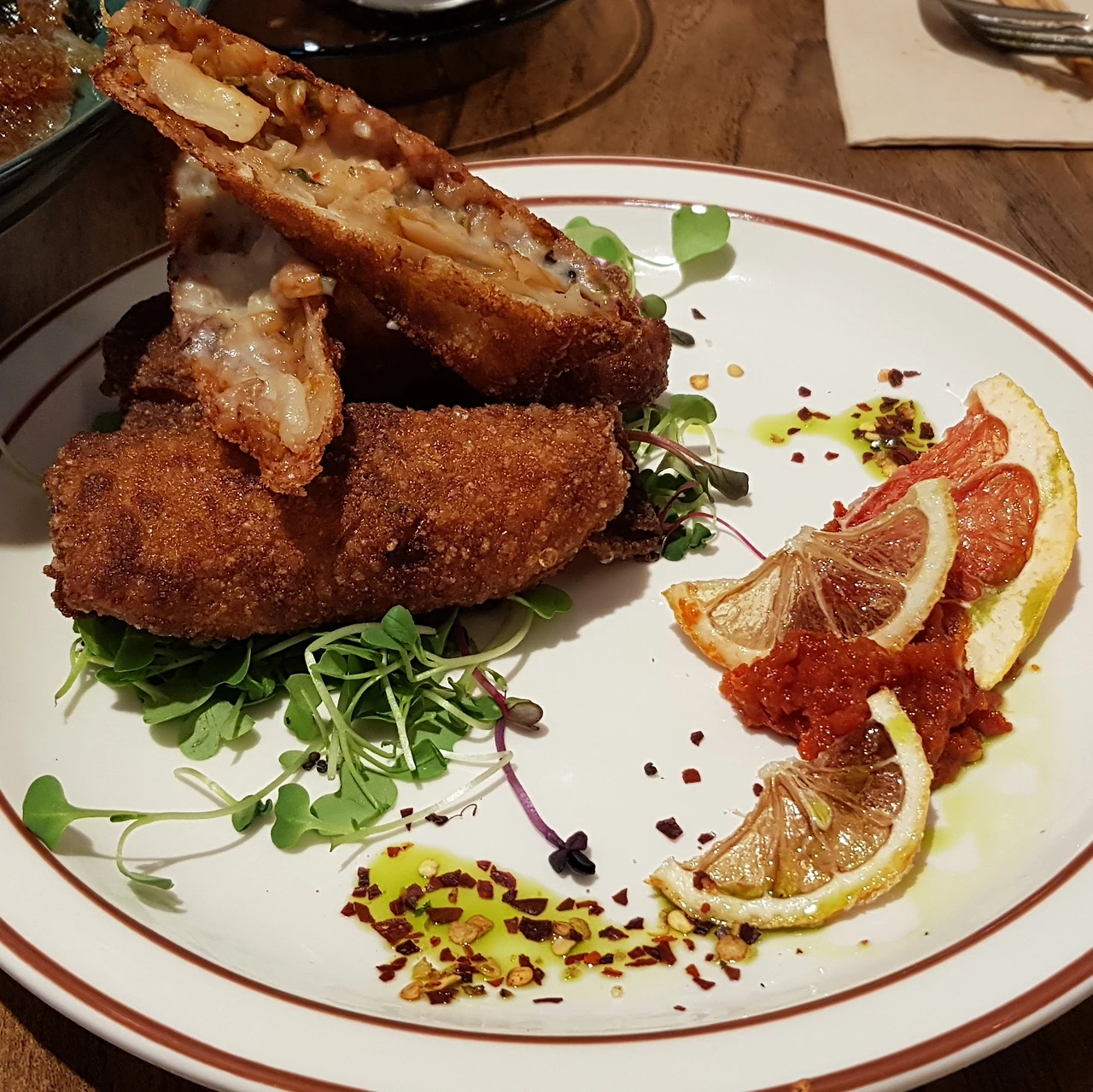 속에 들어찬 김치와 비건 치즈인 듯한 재료들의 조화가 정말 좋았다. 곁들여져 나오는 새싹채소와 함께 페퍼론치노의 매콤함이 살아있는 소스를 찍어 먹으면 더욱 꿀맛. 레몬, 자몽 캔디도 함께 먹으면 색다른 맛을 느낄 수 있다. 정성스러운 플레이팅이 예뻐서 기분이 좋아지고 그만큼 알차고 맛있는 메뉴다.