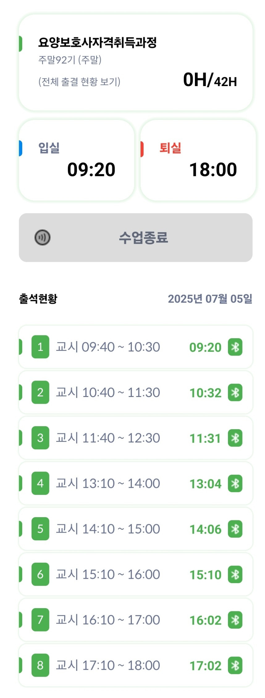 1교시부터 8교시.