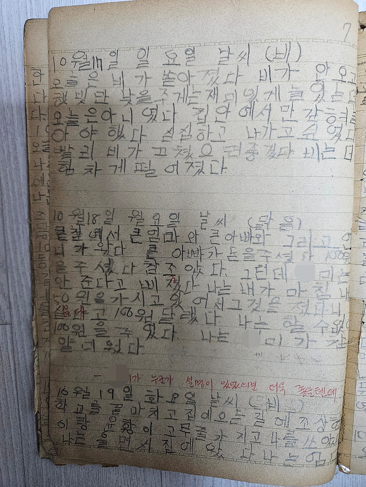 열 살은 동생에게 그동안 차곡차곡 모아둔 비상금 50원을 큰맘 먹고 주었을 거예요.