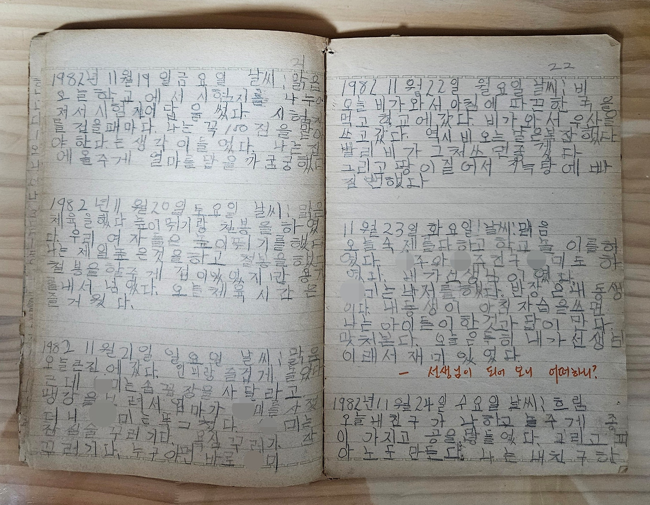 1982년 11월 22일 월요일 날씨 : 비