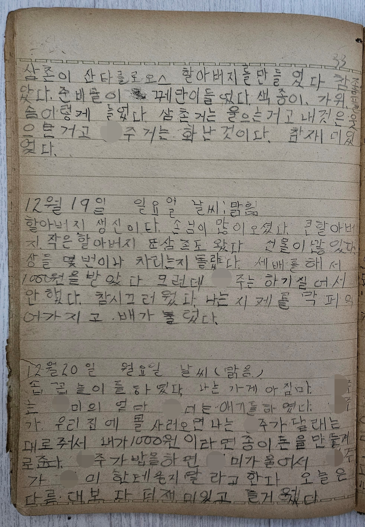 산타를 만들면서 행복해하고 좋아하는 열 살의 어린 시절.