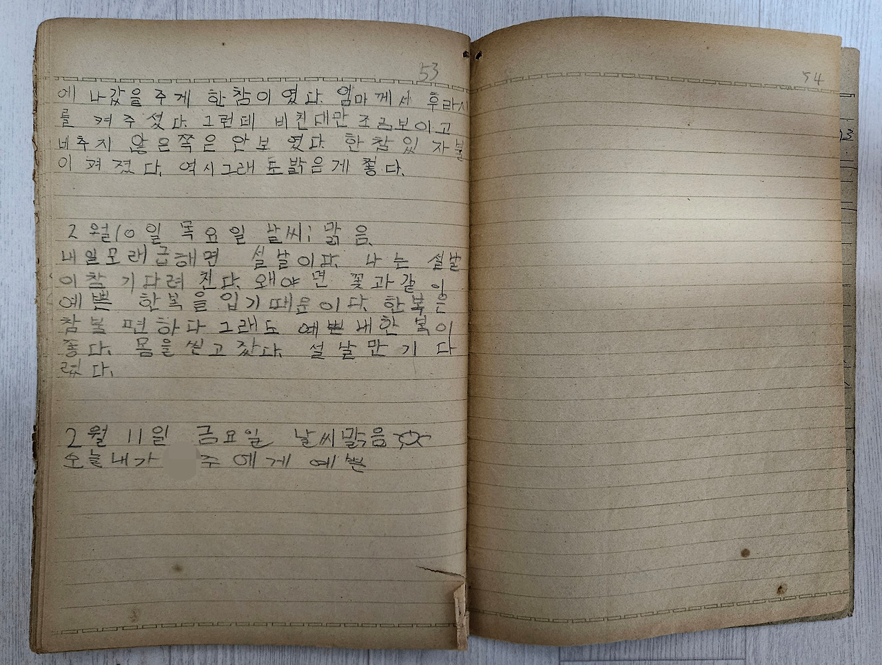 일기는 2월 11일에서 갑자기 멈췄다.
