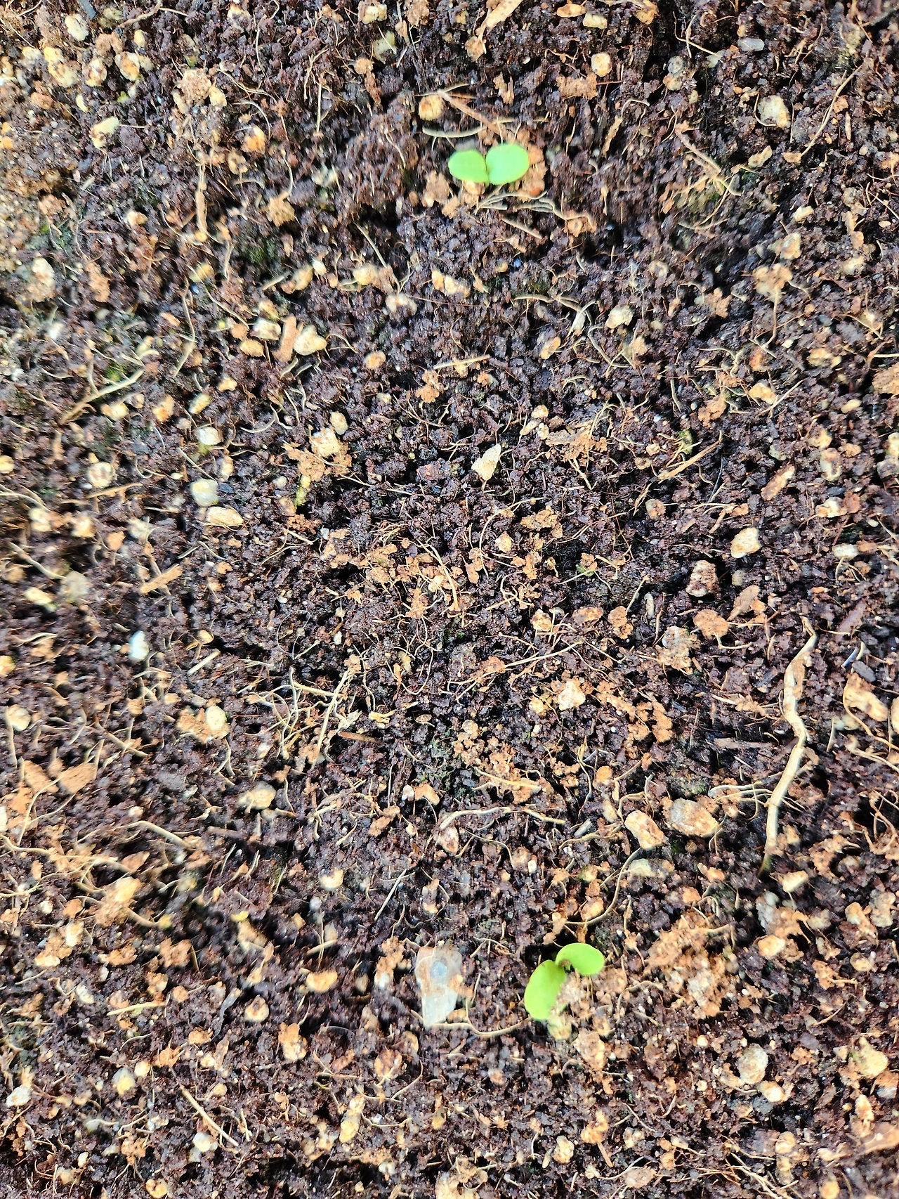 옥상 상자텃밭에 상추씨앗이 나와서 자라고 있다.
