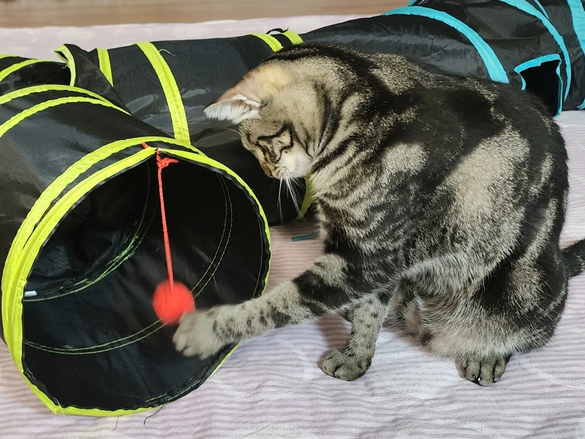 졸지에 엄빠가 냥펀치를 해서 간식을 주는 장치가 되어버