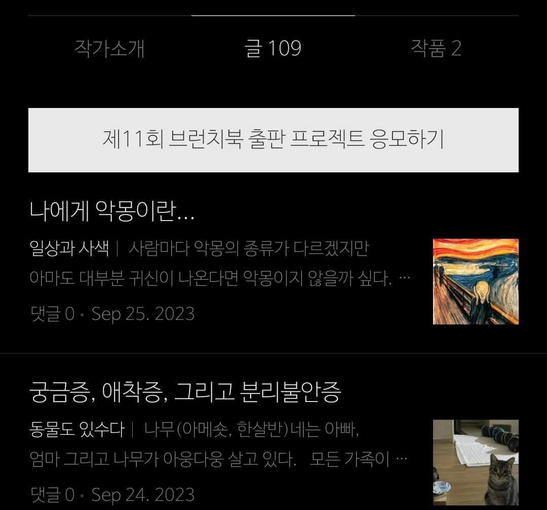 브런치 작가 중에 하루 한 개 글쓰기를 계속 실천하고 있는 분이 있다. 정말 쉽지 않은 일임에도 계속하고 계신 걸 보면, 무언가 반성하는 마음이 든달까? 유튜브 보는 시간을 좀 줄이면 더 할 수 있을 텐데 싶지만, 취미에만 너무 많은 시간을 들이고 싶지도 않고, 참 고민되는 요즘이다.