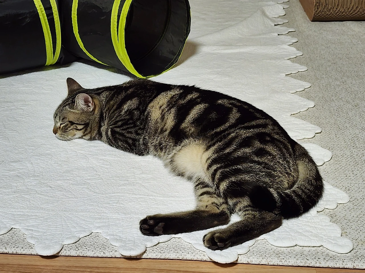 오늘도 나무(아메숏, 한살반)은 저녁을 먹고는 늘어져있다.