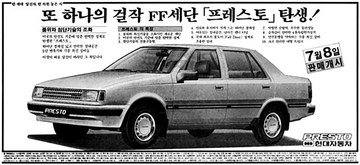 우리집 첫 차는 갤로퍼보다는 앞선 차로 89년형 프레스토였는데, 가족의 첫 차로 꽤 수고가 많았던 차이다. 쌍둥이 차인 엑셀과 함께 미국 수출의 지평을 열었지만, 엉망인 품질로 미국 내 H사의 안좋은 이미지를 만드는데 크게 일조했던 차다. 뭐...아마 지금 길거리에 돌아다니면 이야! 저 차가 아직도 다녀? 라고 시선을 받을 것 같긴하다. 그렇다고 부러워하지는 않겠지만.