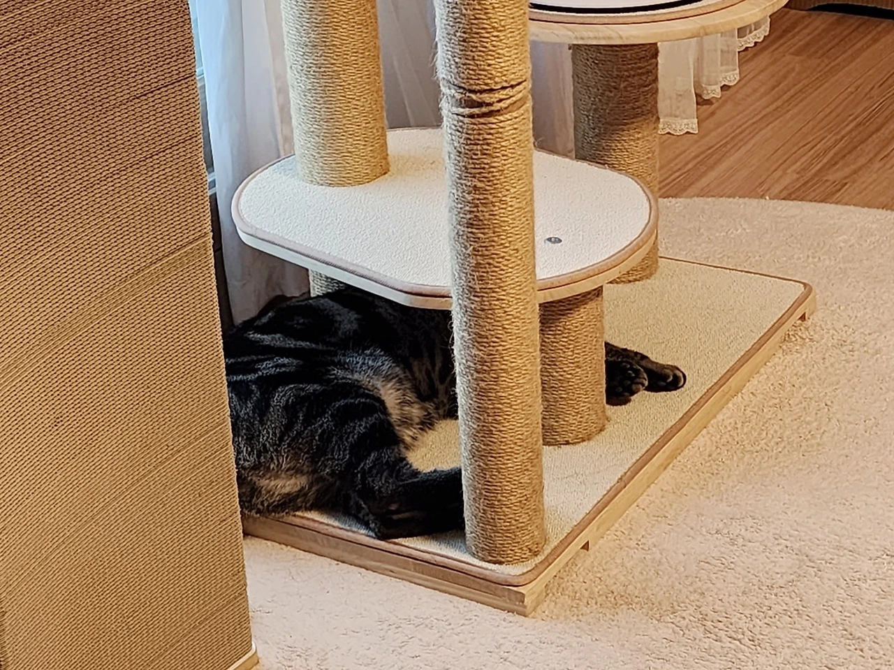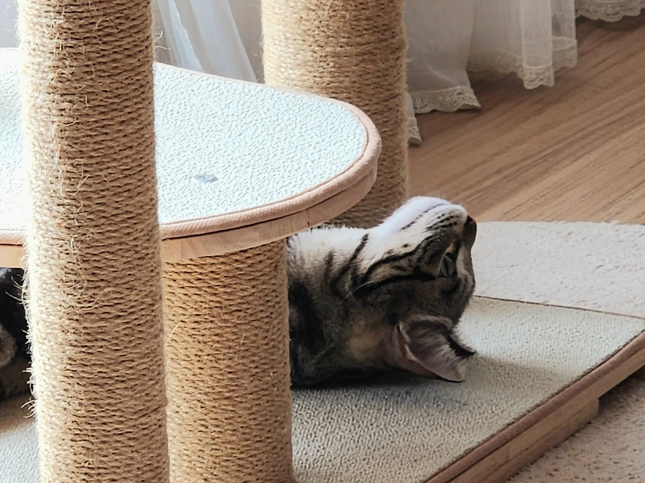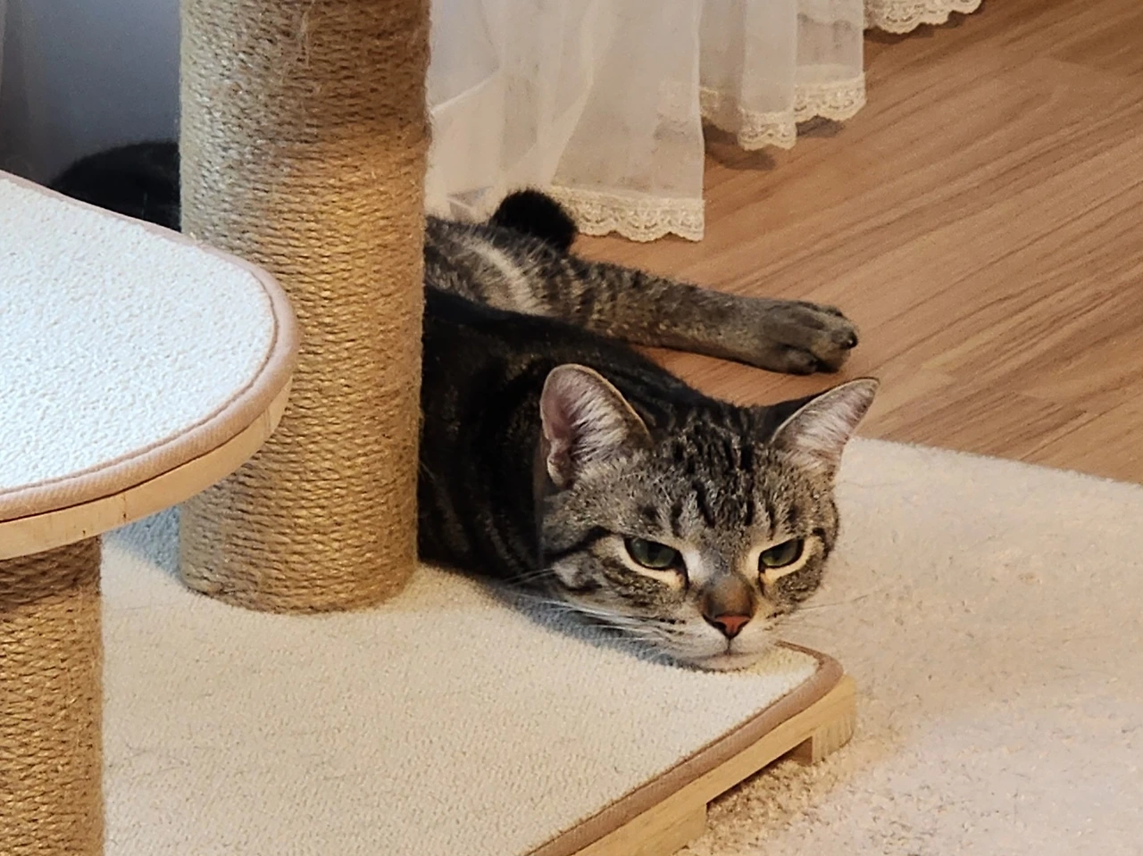 "캣타워 내놓는다고 했더니, 우울해서 저런가? 내둥 다른데서 놀다가 요즘 저기서 저러네...허허.."