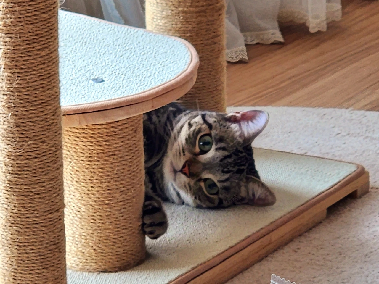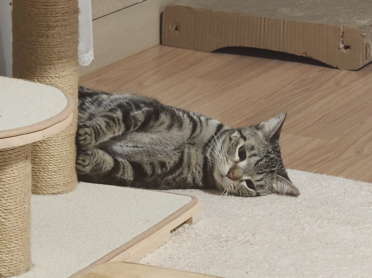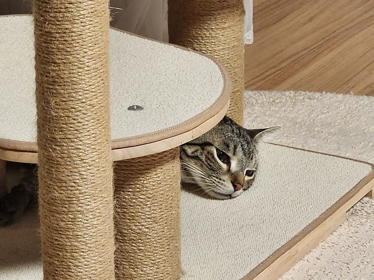 "캣타워 내놓는다고 했더니, 우울해서 저런가? 내둥 다른데서 놀다가 요즘 저기서 저러네...허허.."