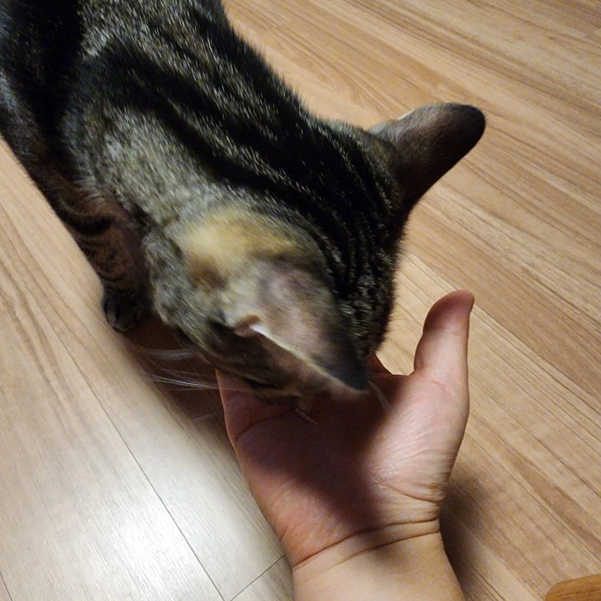 '손에 간식을 쥐고 계시는군요... 냄새가 납니다..그려..'
