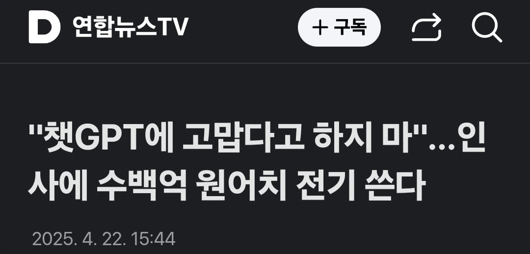 그런데 기사를 읽고 난 후, 문득 엉뚱한 상상을 해보게 된다. 정말 문득 이윤을 추구하는 기업이라는 특성상 언젠가는 정말 AI에게 "감사합니다"라는 인사를 하지 말라고 가이드가 나오는 게 아닐까 하는 그런 상상 말이다. 그러면, "감사합니다"라는 인사로 토큰이 소모된다는 사실을 알게 되어 사용자들이 사족에 해당하는 행위를 줄여나갈 테고 그 결과 감사인사를 하지 않게 되는 현상이 생길 수도 있지 않겠나 싶다.