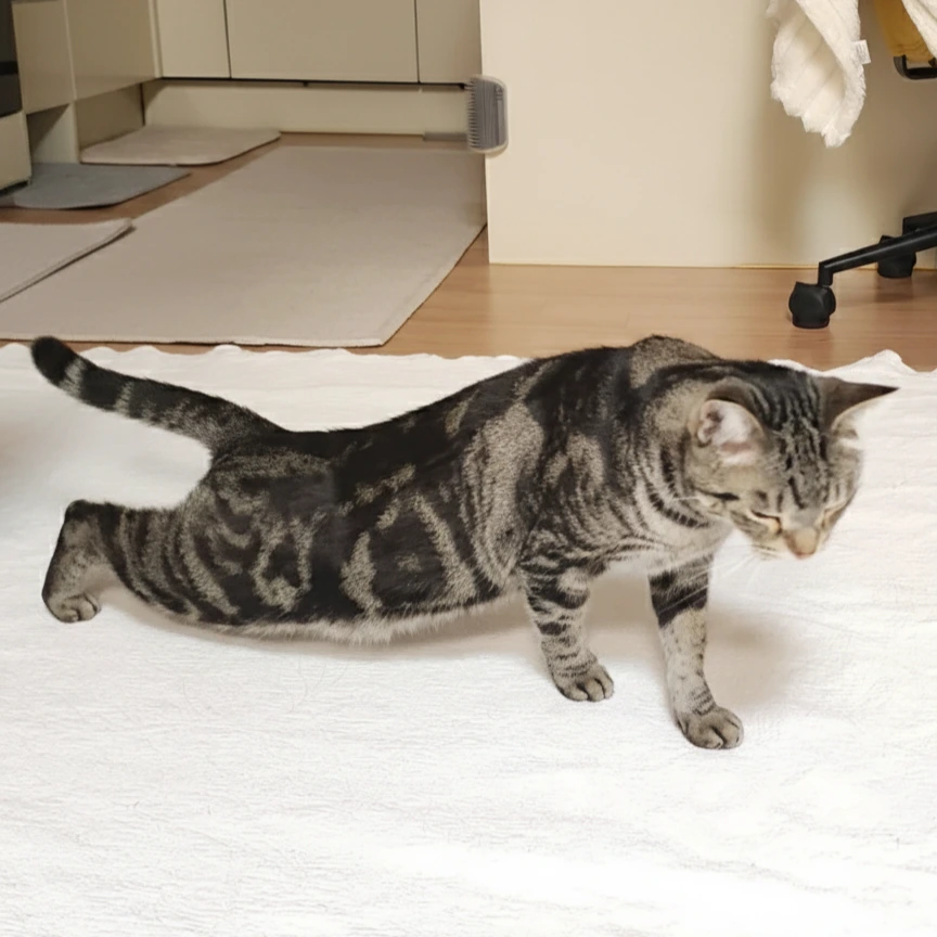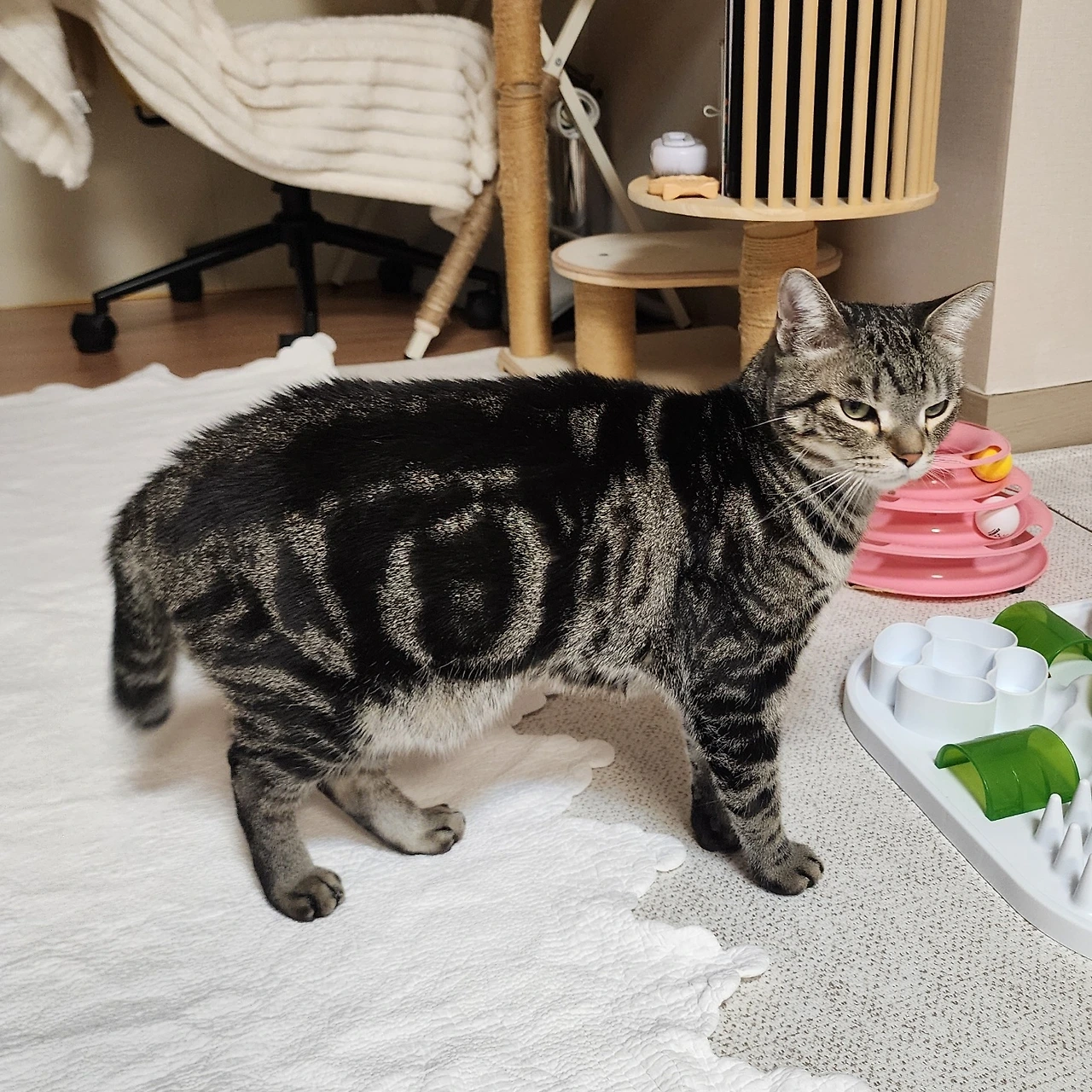 평소 퇴근하면 현관까지 나와 울어대던 녀석이 복도에서만 소리치고, 아빠가 부르니까 본 척도 안 한다.