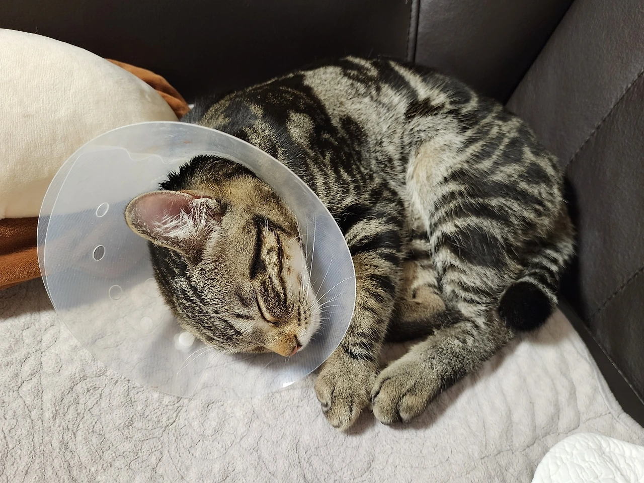 지난 겨울에 중성화 수술 마치고, 걱정했었는데 잘 견딘 나무입니다. 수술 후에 집에 와서 얌전히 자는 천사같은 나무~