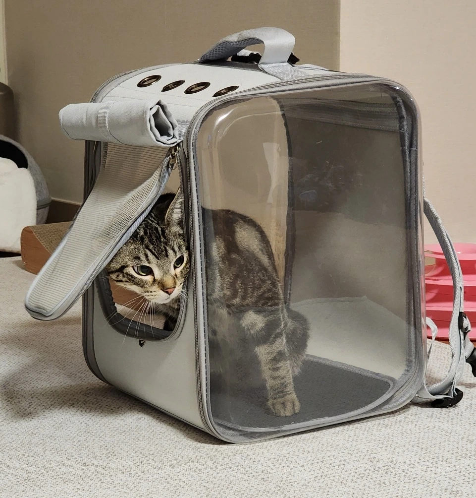 난 쫄래쫄래 가방에 들어갔어. 마침 난 바깥구경도 좋아하거든.