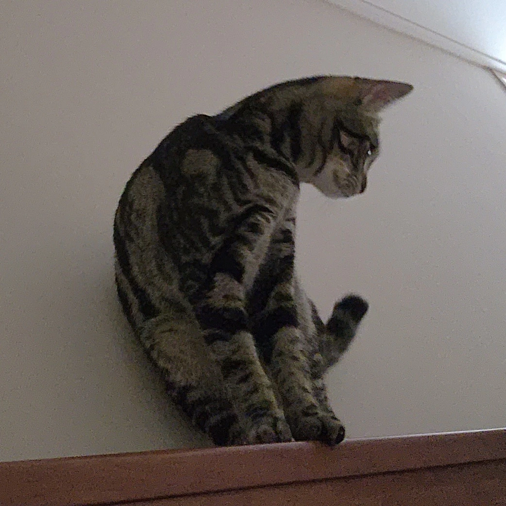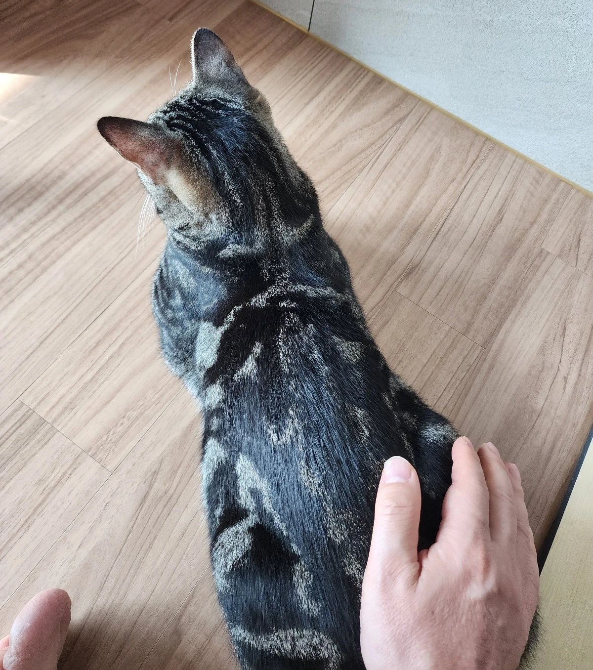 아빠는 게슴츠레한 눈으로 나무를 따라나가서, 모닝 궁디팡팡을 시전한다.