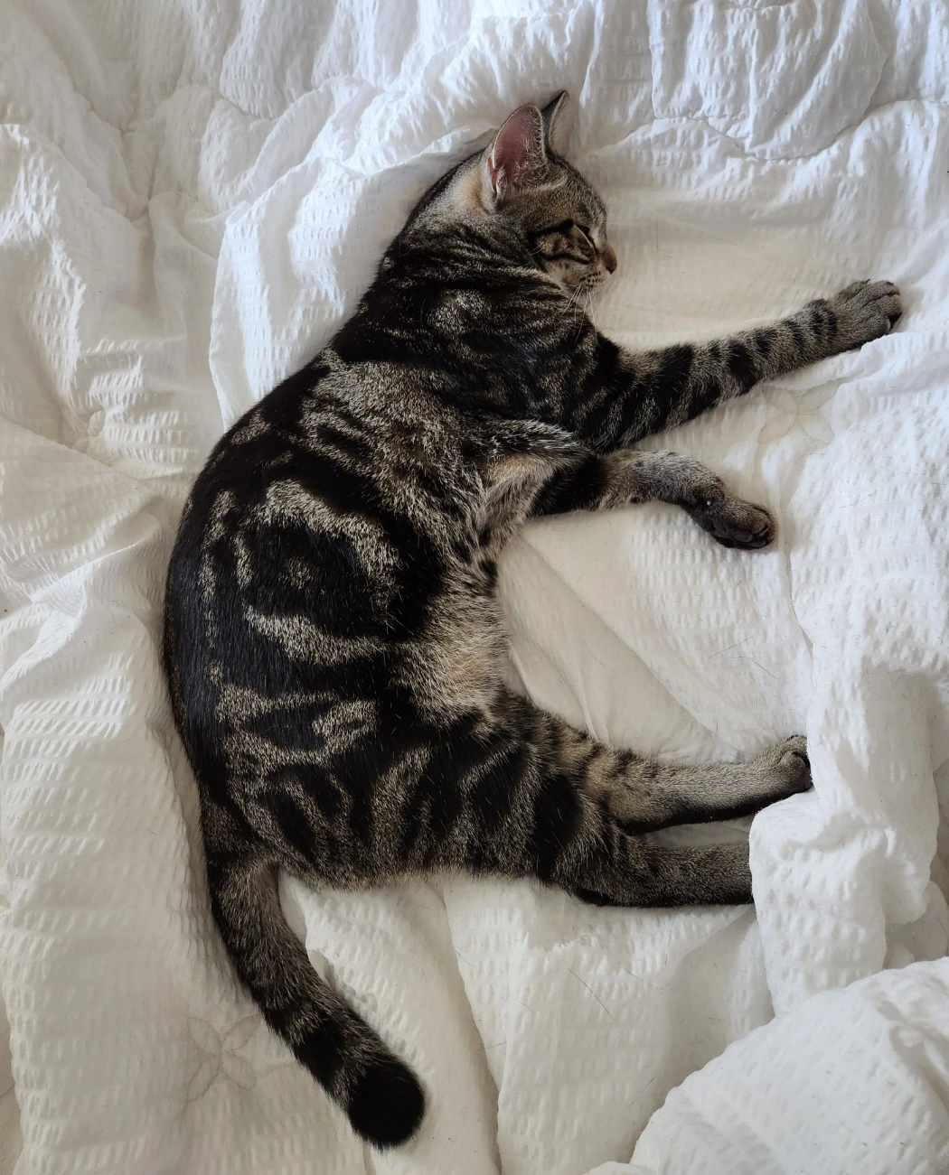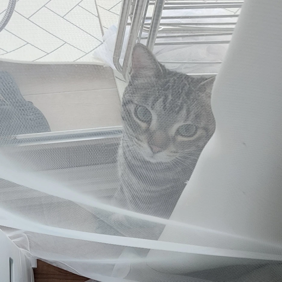 '아빠가 깬다. 성공이다냥!'