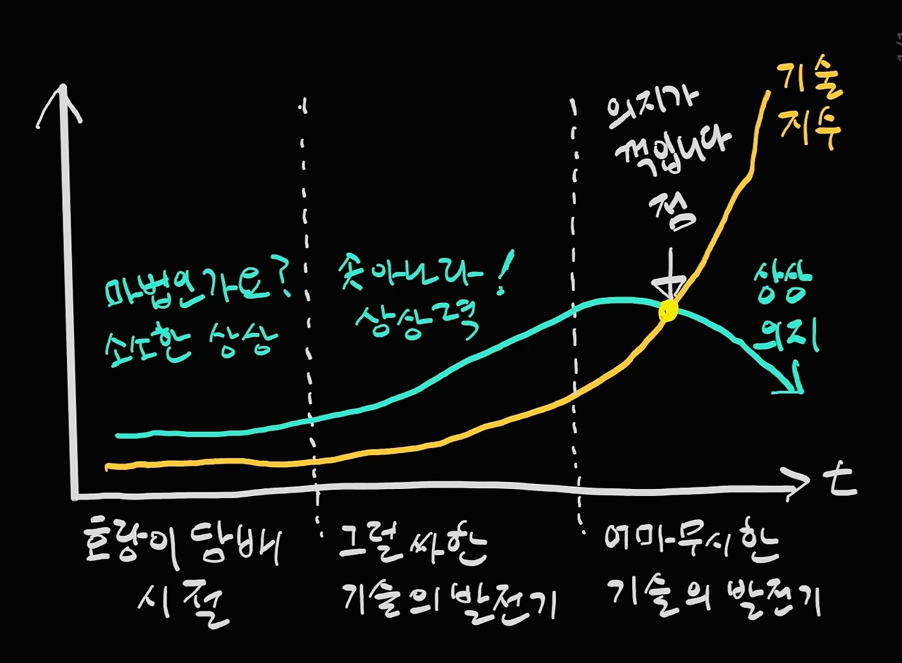기술발전과 상상의지의 상관관계...에 대한 망상그래프