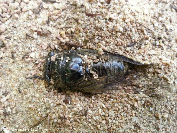 그 매미들 중에 때로는 수많은 개미들이 붙어있는 경우를 볼 수 있다. 자신의 몸에 비해 커다란 매미를 일개미들이 열심히 분해하여 먹을 것을 취하고 있는 모습이다.