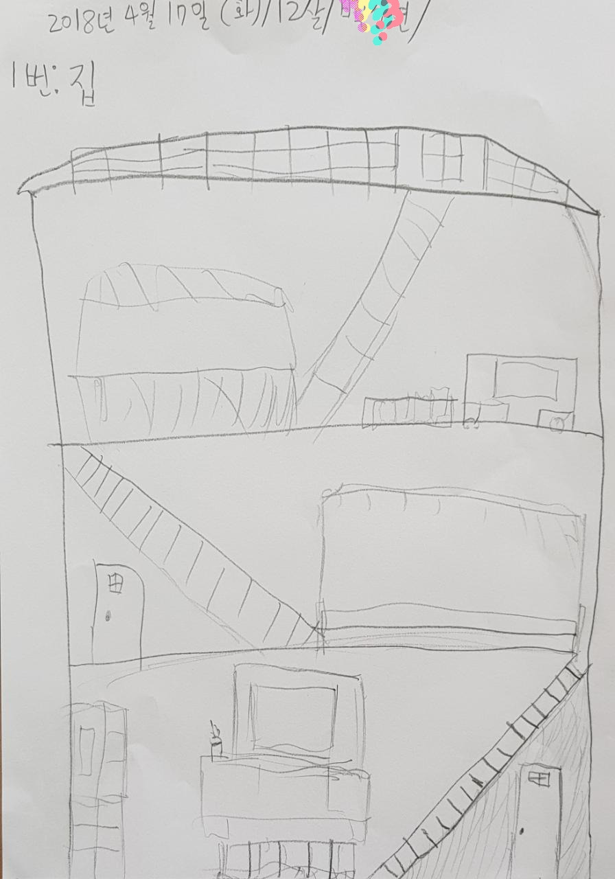 준수는 다소 부정적인 성향을 가진 아이다. 친구와의 사소한 갈등에도 자기만 피해를 입었다며 억울함을 표출한다. 너무 억울하여 쉽게 풀리지 않을 정도다. 마치 세상에 자기편은 아무도 없는 듯한 우울한 표정이 된다. 책상에 엎드려 눈물을 훌쩍일 때도 있다. 눈물을 닦으면서 처량한 눈빛으로 흘깃 선생님의 눈치를 살피기도 한다. 마치 빨리 와서 달래 달라는 메시지를 담고 있는 듯하다. 이처럼 준수는 피해의식에 사로잡히면 좀처럼 풀리지 않는다. 나는 준수의 내면이 궁금했다. HTP 그림 검사를 이용했다. 그중에서 준수가 그린 집을 두고 대화를 나눠 보았다.