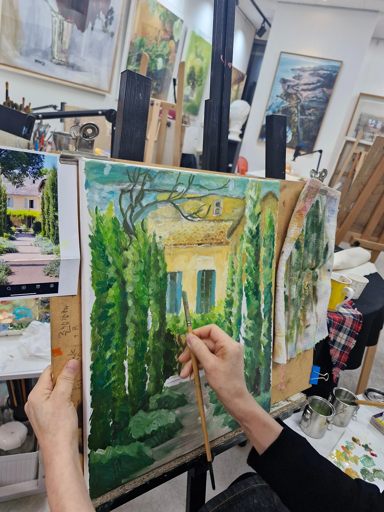 나는 얼떨결에 동의하고 유화를 시작했다.