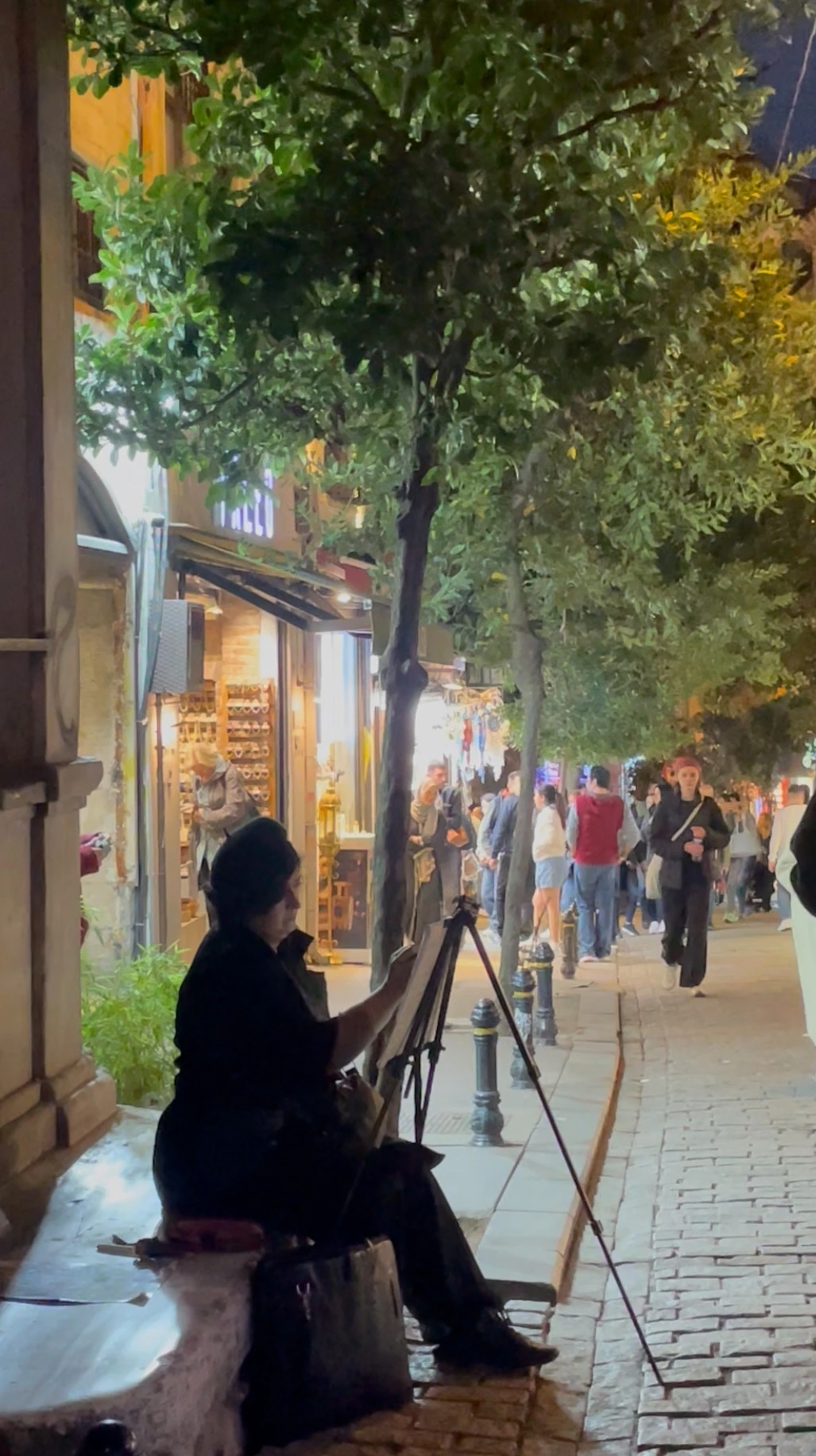 다리가 아파올 때쯤 갈라탑이 보였다. 오래전 요새 역할을 했던 곳. 해가 져 조명이 켜진 그곳을 보고 있으니 경주의 첨성대가 떠올랐다. 어느 나라건 높은 곳에 대한 서사가 있나보다. 갈라탑을 지나 숙소로 가는 길에 한 여성이 앉아 그림을 그리고 있었다.